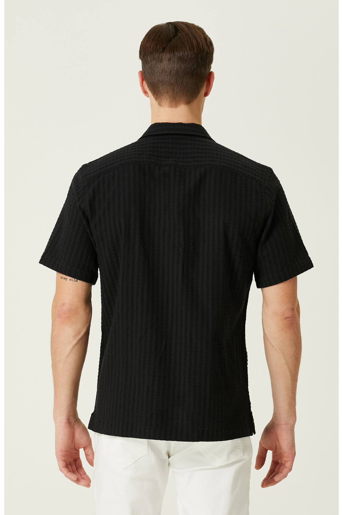 خرید اینترنتی پیراهن مردانه آستین کوتاه یقه باز طرح ژاکارد مشکی برند نتورک Network اورجینال از Network نمایندگی و فروشگاه معتبر ترکیه