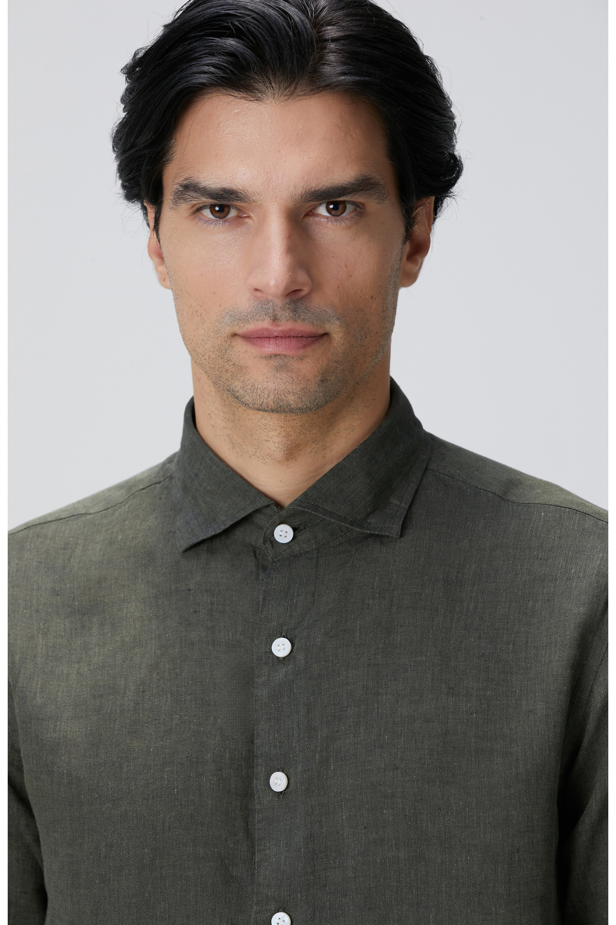 خرید اینترنتی پیراهن کتانی خاکی برند نتورک Network اورجینال از Network نمایندگی ترکیه