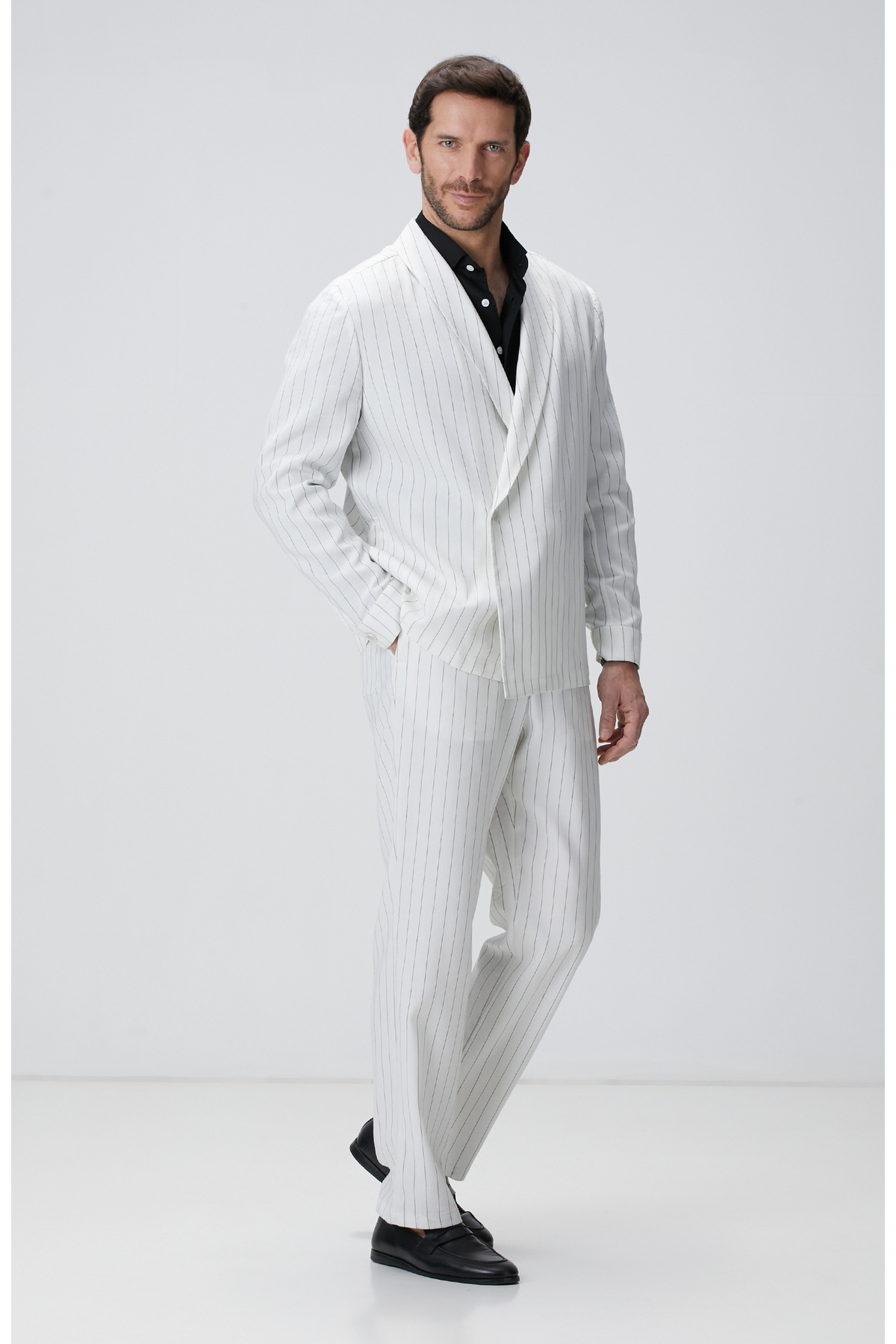 خرید اینترنتی کت و شلوار ترکیبی کتان سفید مایل به کرم برند نتورک Network اورجینال از Network نمایندگی ترکیه