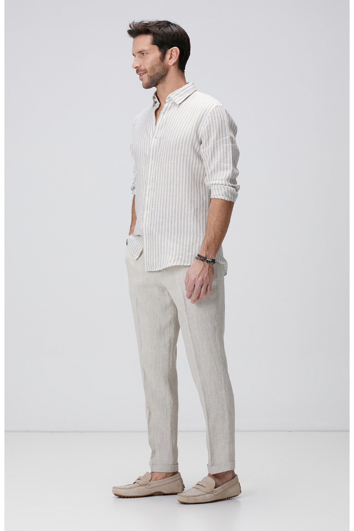 خرید اینترنتی پیراهن کتانی سفید خاکی برند نتورک Network اورجینال از Network نمایندگی ترکیه