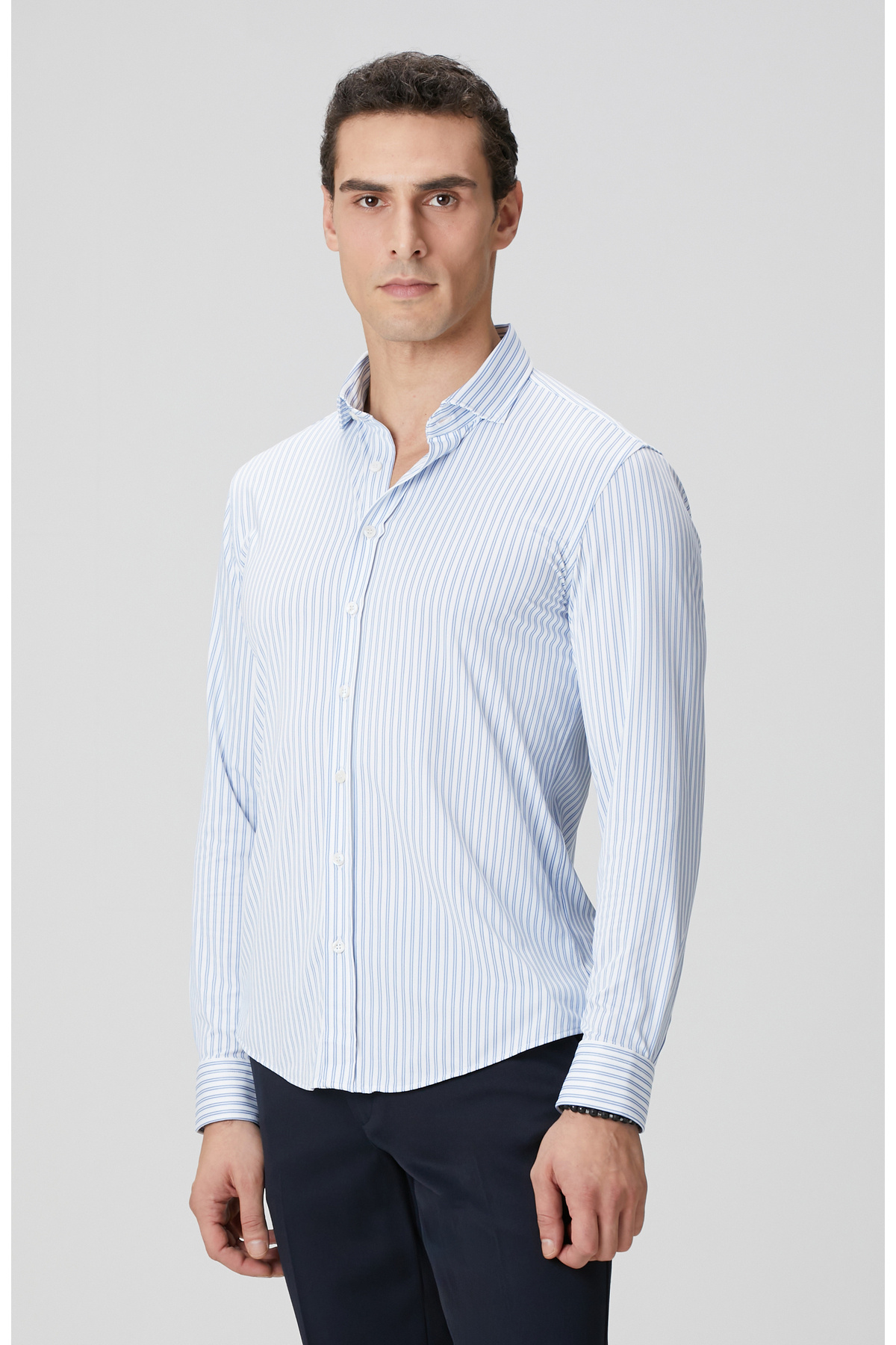 خرید اینترنتی پیراهن راه راه سفید آبی N-Tech برند نتورک Network اورجینال از Network نمایندگی ترکیه