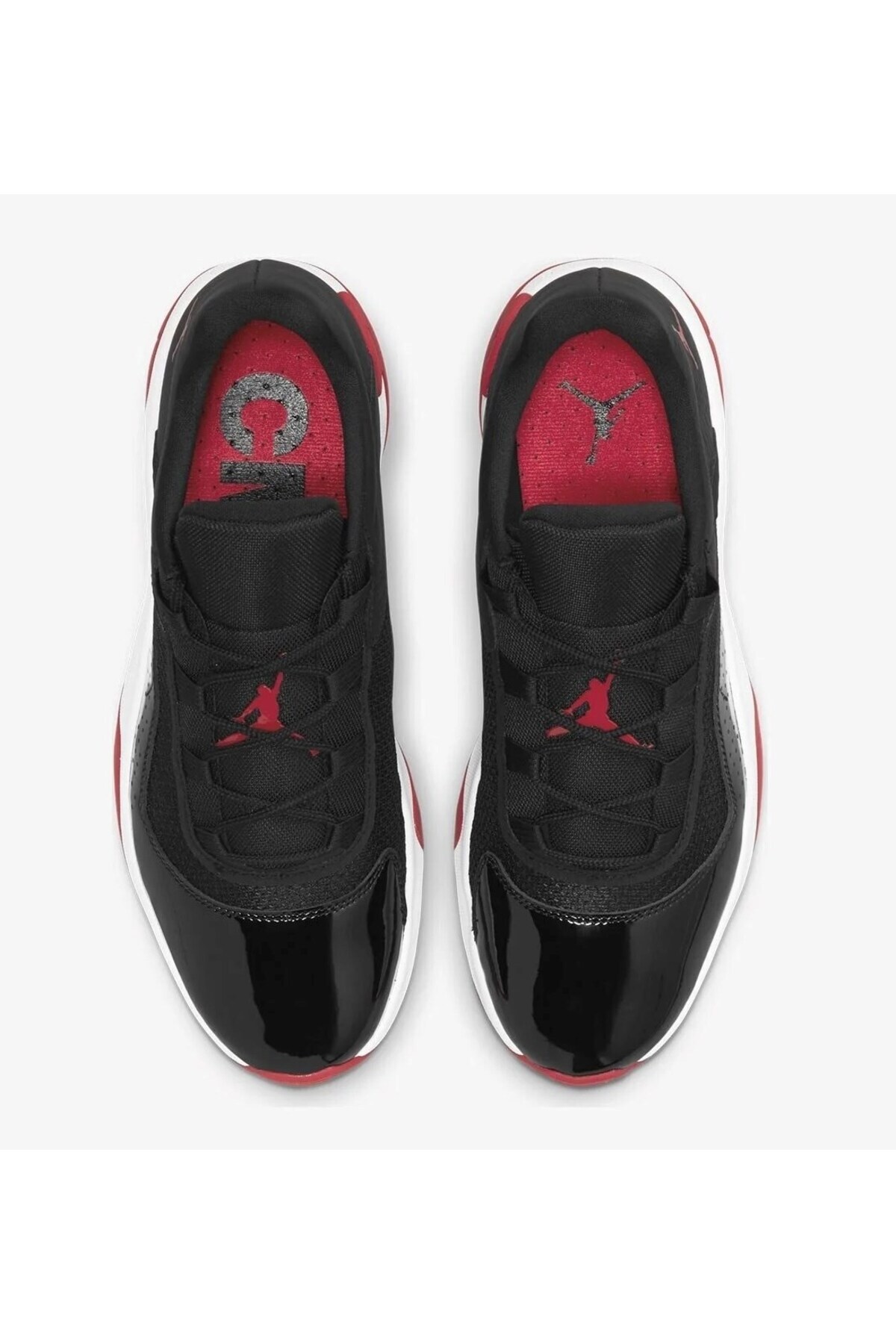 این کفش ساق کوتاه که از مدل شیک و مدرن ایر جردن 11 الهام گرفته شده است، دارای یک سرپنجه چرمی ورنی و حلقههای توری مشبک برای بستن سریع بند کفش است.
