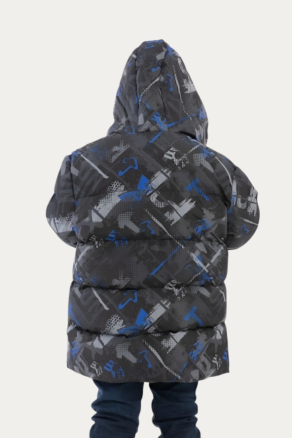 خرید اینترنتی کاپشن زمستانی پسرانه پددار کلاهدار ضد آب و باد، طرح دیجیتال آنتراسیت، آستر پشمی برند Outriverkids اورجینال از Royal Side نمایندگی ترکیه