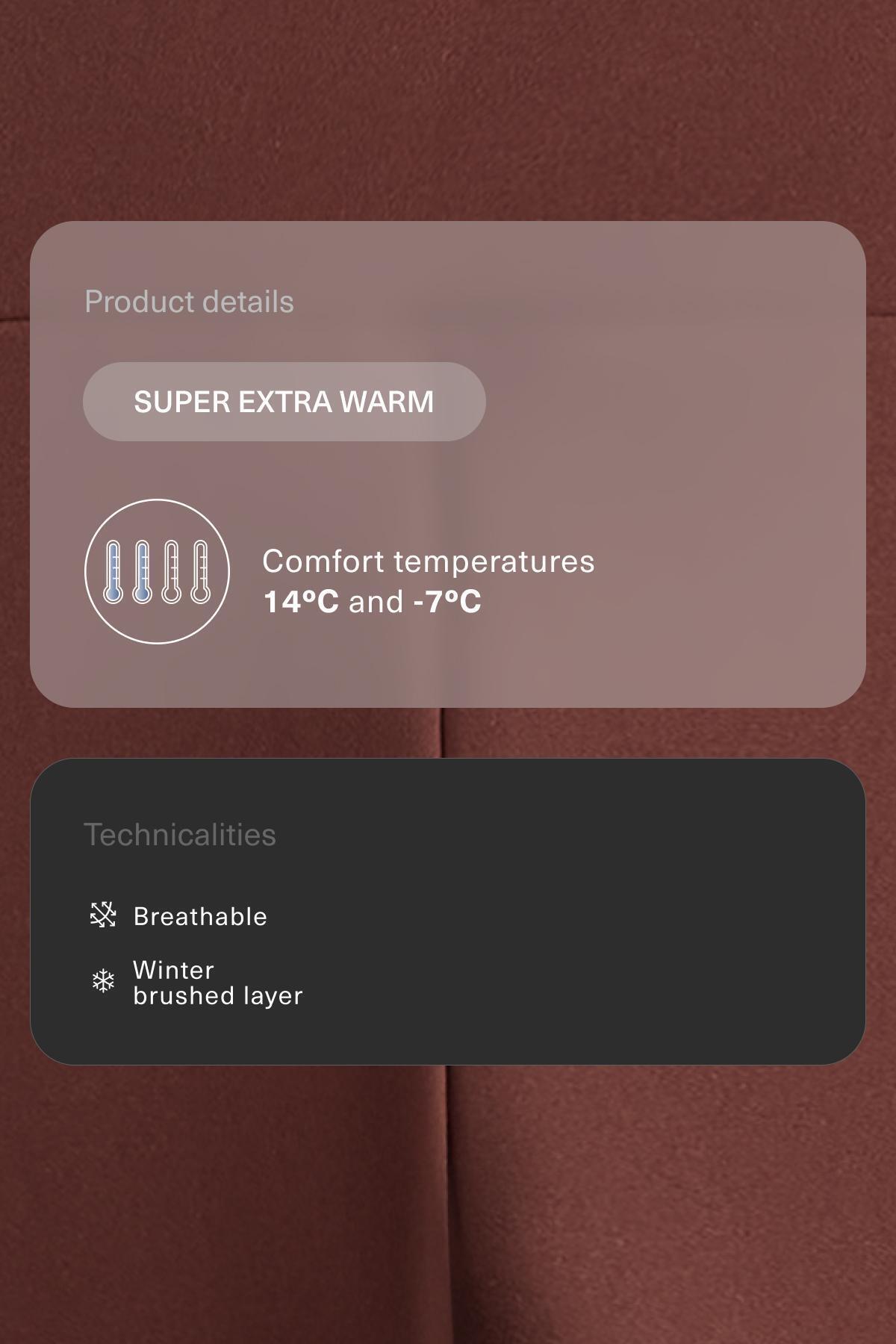 این لباس در آزمایش استاندارد با سرعت باد شبیهسازی شده ۰.۴ متر بر ثانیه در هنگام پوشیدن ژاکت، پیراهن آستین بلند یقه بلند، لباس زیر، جوراب، کفش، دستکش و کلاه بافتنی، مقاومت در برابر دما از +۱۴ درجه سانتیگراد (فعالیت کم) تا -۷ درجه سانتیگراد (فعالیت متوسط) را تضمین میکند.