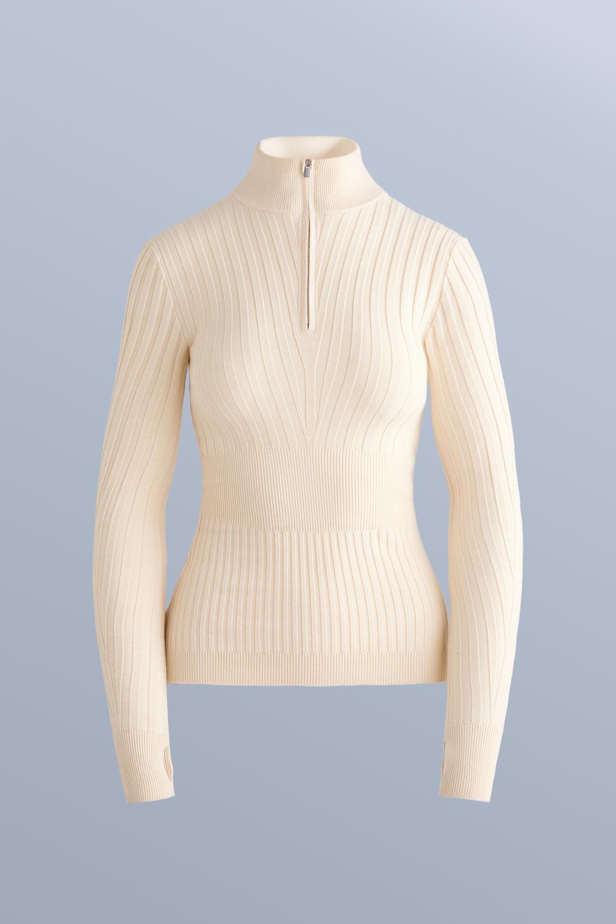 یک تیشرت آستین بلند یقه اسکی با زیپ جلویی تا سینه.