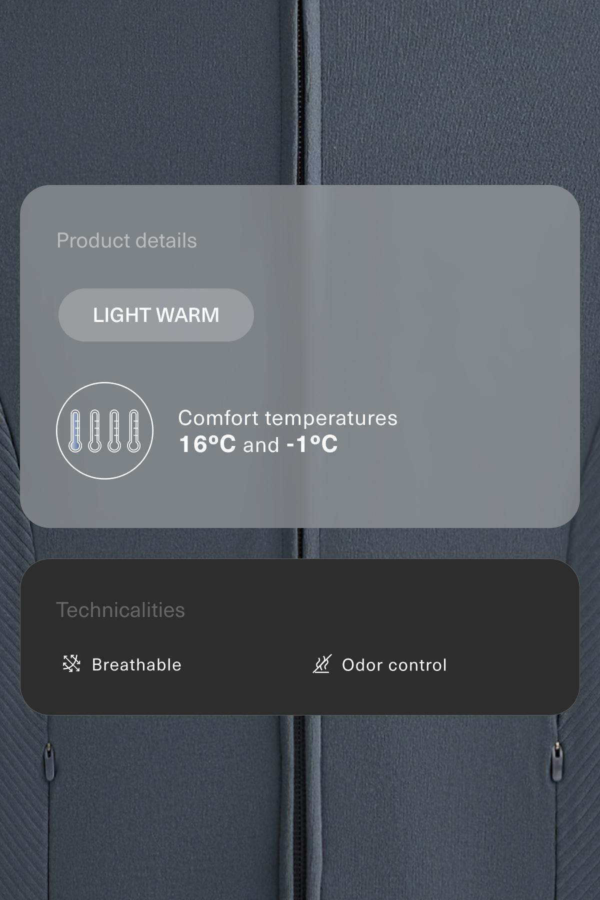 این لباس در طول یک آزمایش استاندارد که با سرعت باد شبیهسازی شده ۰.۴ متر بر ثانیه انجام شده است، با پوشیدن یک تیشرت یقه اسکی آستین بلند، شلوار، لباس زیر، جوراب، کفش، دستکش و کلاه بافتنی، در برابر دمای بین ۱۶+ درجه سانتیگراد و ۱- درجه سانتیگراد (فعالیت متوسط) مقاوم است.