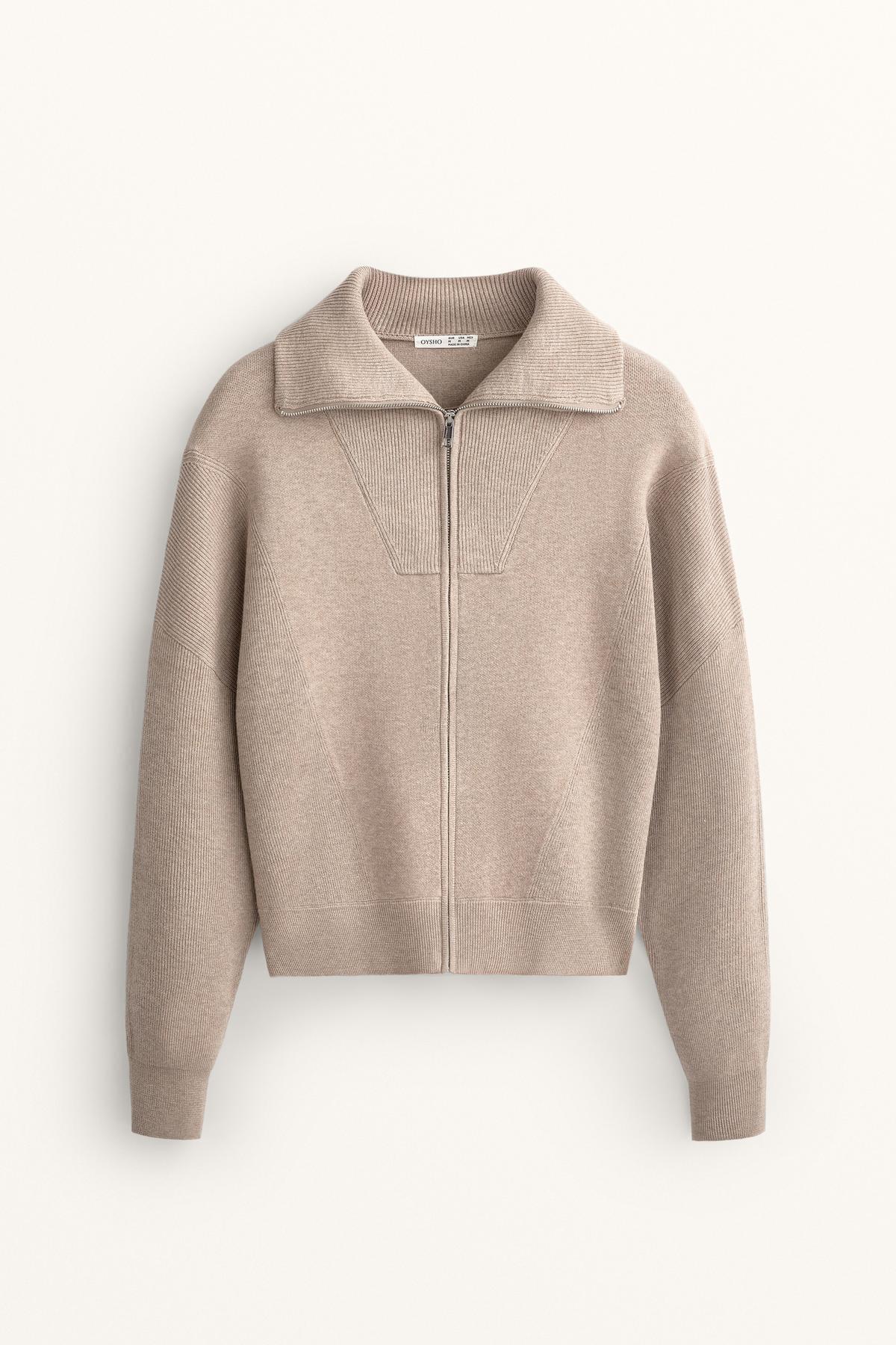 خرید اینترنتی ژاکت بافتنی یقه دندهای برند اویشو Oysho اورجینال از OYSHO نمایندگی و فروشگاه معتبر ترکیه
