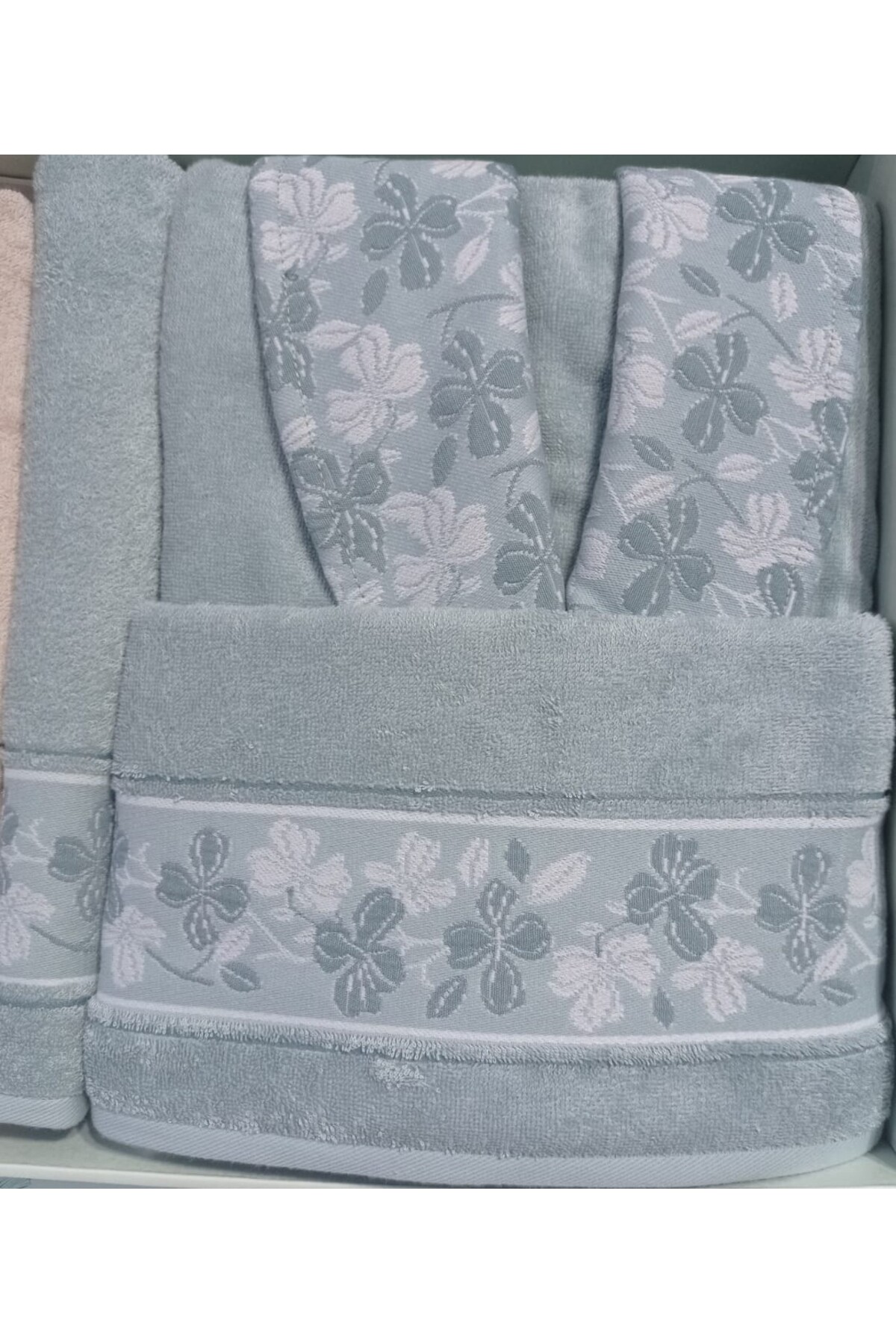 این حوله حمام که به صورت ست ارائه میشود، ظرافت و کاربردی بودن را با هم ترکیب میکند.