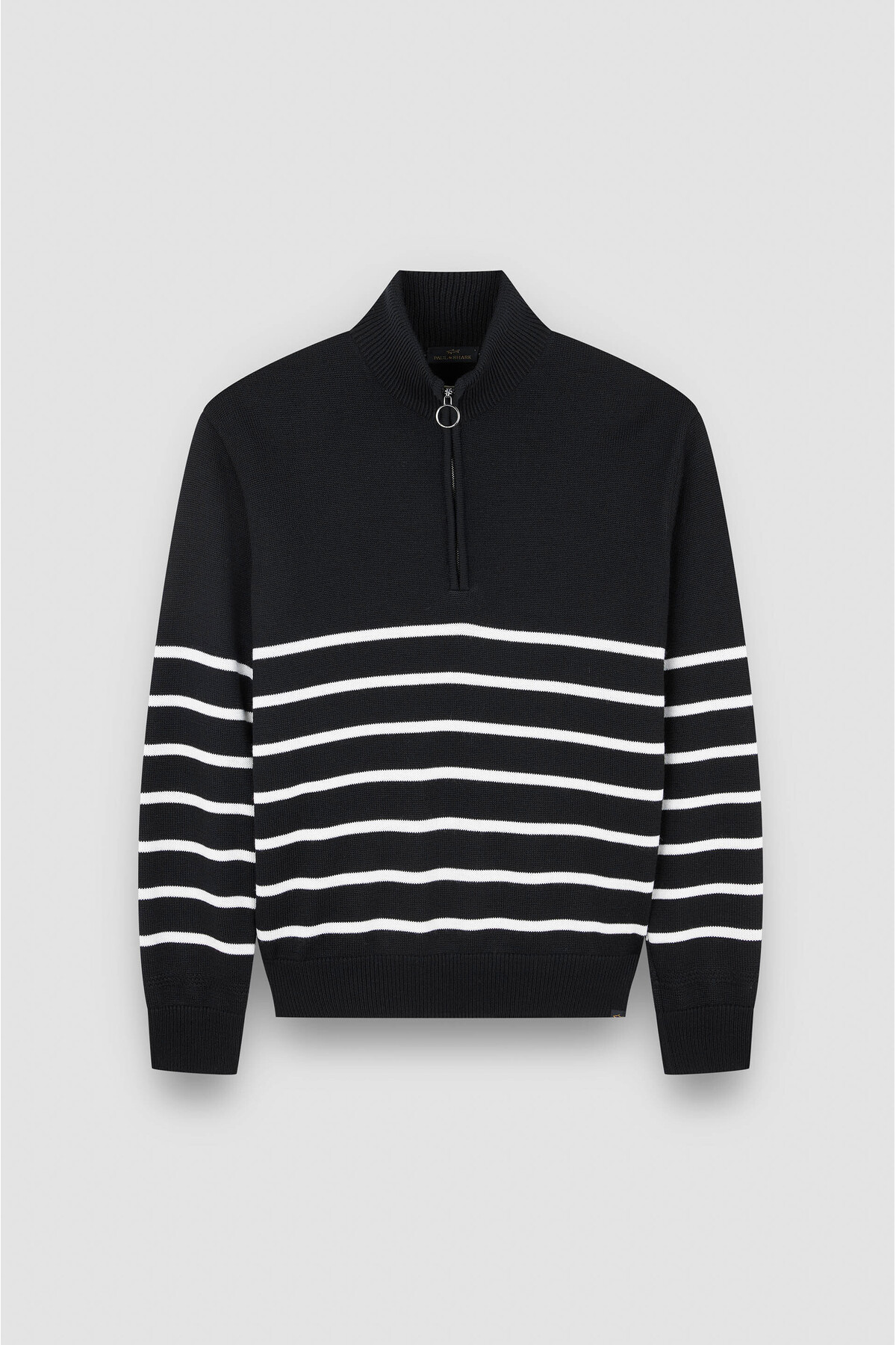 خرید اینترنتی ژاکت بافتنی مردانه یقه ایستاده، آستین بلند، طرح راه راه، مشکی، آستین بلند، کد 15311142-213 برند پال اند شارک Paul&Shark اورجینال از Wejaar نمایندگی ترکیه