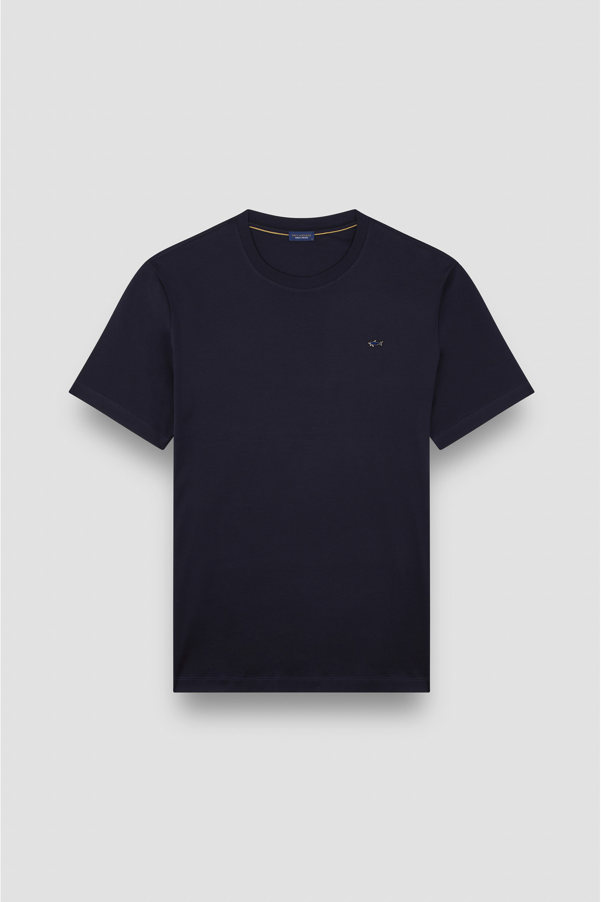 خرید اینترنتی تیشرت آستین کوتاه مردانه طرح کوسه، یقه گرد، جنس پارچه کشسان ۱۰۰٪ پنبه، رنگ ثابت، به رنگ سرمهای-طلایی برند پال اند شارک Paul&Shark اورجینال از Wejaar نمایندگی ترکیه