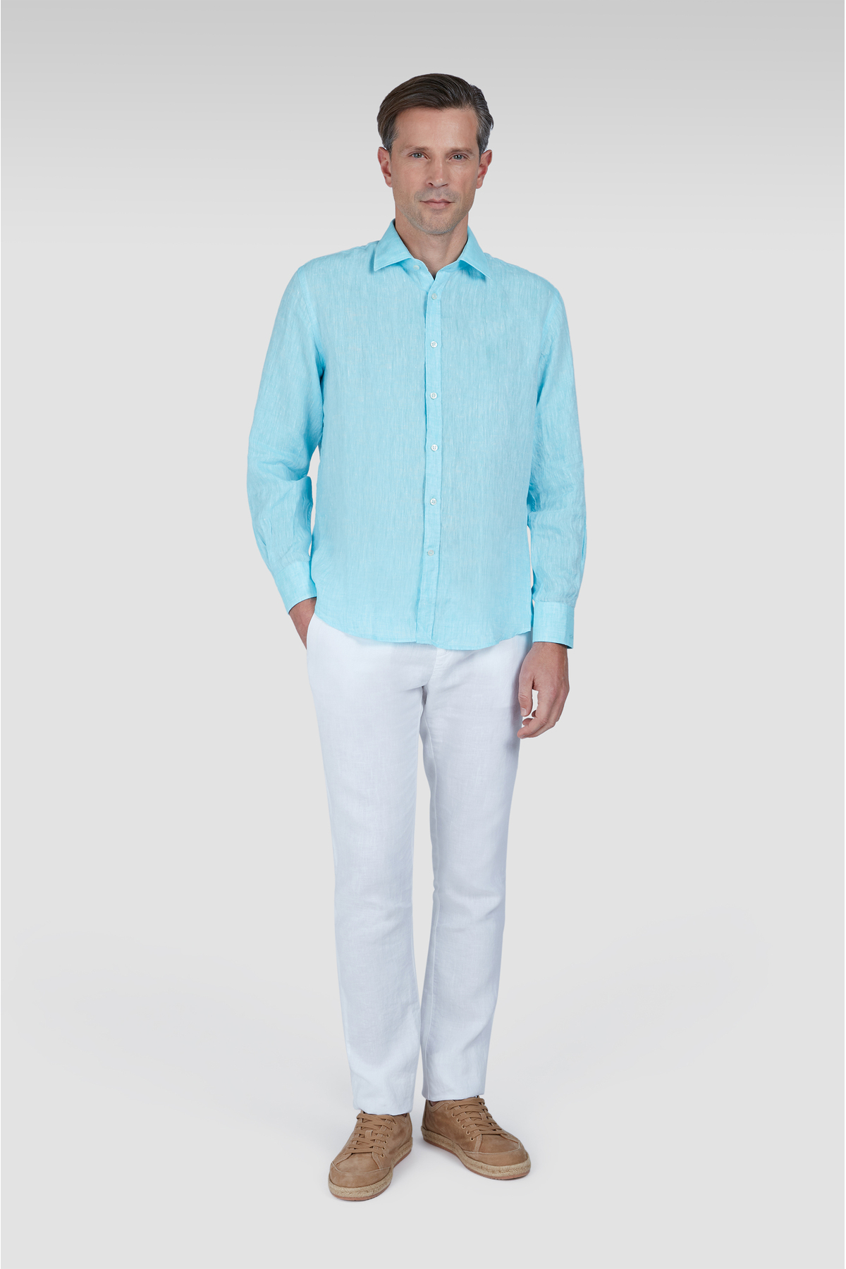 خرید اینترنتی پیراهن مردانه آستین بلند ساده ۱۰۰٪ کتان، سایز معمولی، آبی روشن، کد ۲۵۴۱۳۰۰۶CF-۵۲۴ برند پال اند شارک Paul&Shark اورجینال از Wejaar نمایندگی ترکیه