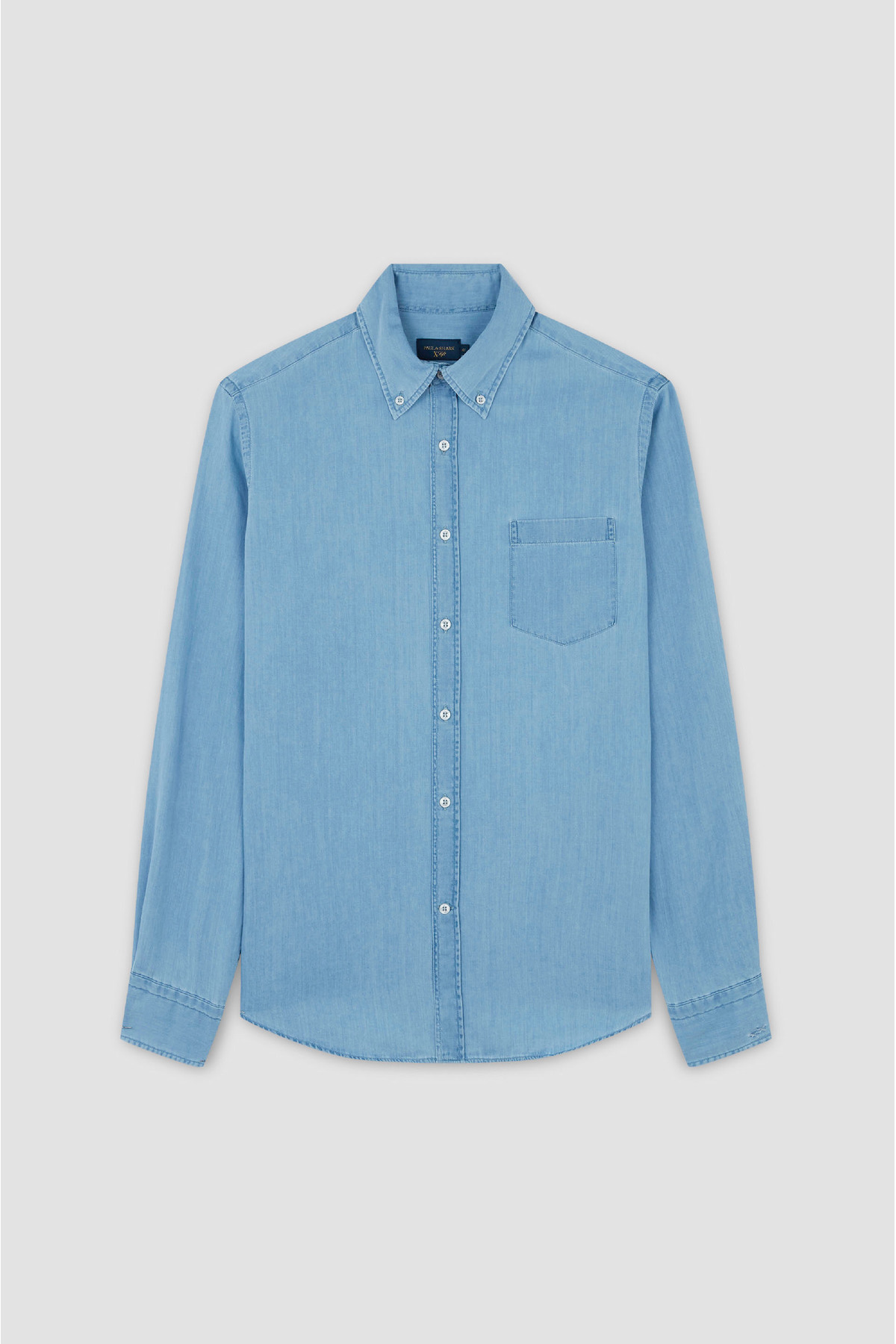 خرید اینترنتی پیراهن مردانه آستین بلند دکمهدار ۱۰۰٪ پنبهای، رنگ سرمهای روشن، کد ۲۵۴۱۳۱۶۰CF-J01 برند پال اند شارک Paul&Shark اورجینال از Wejaar نمایندگی ترکیه