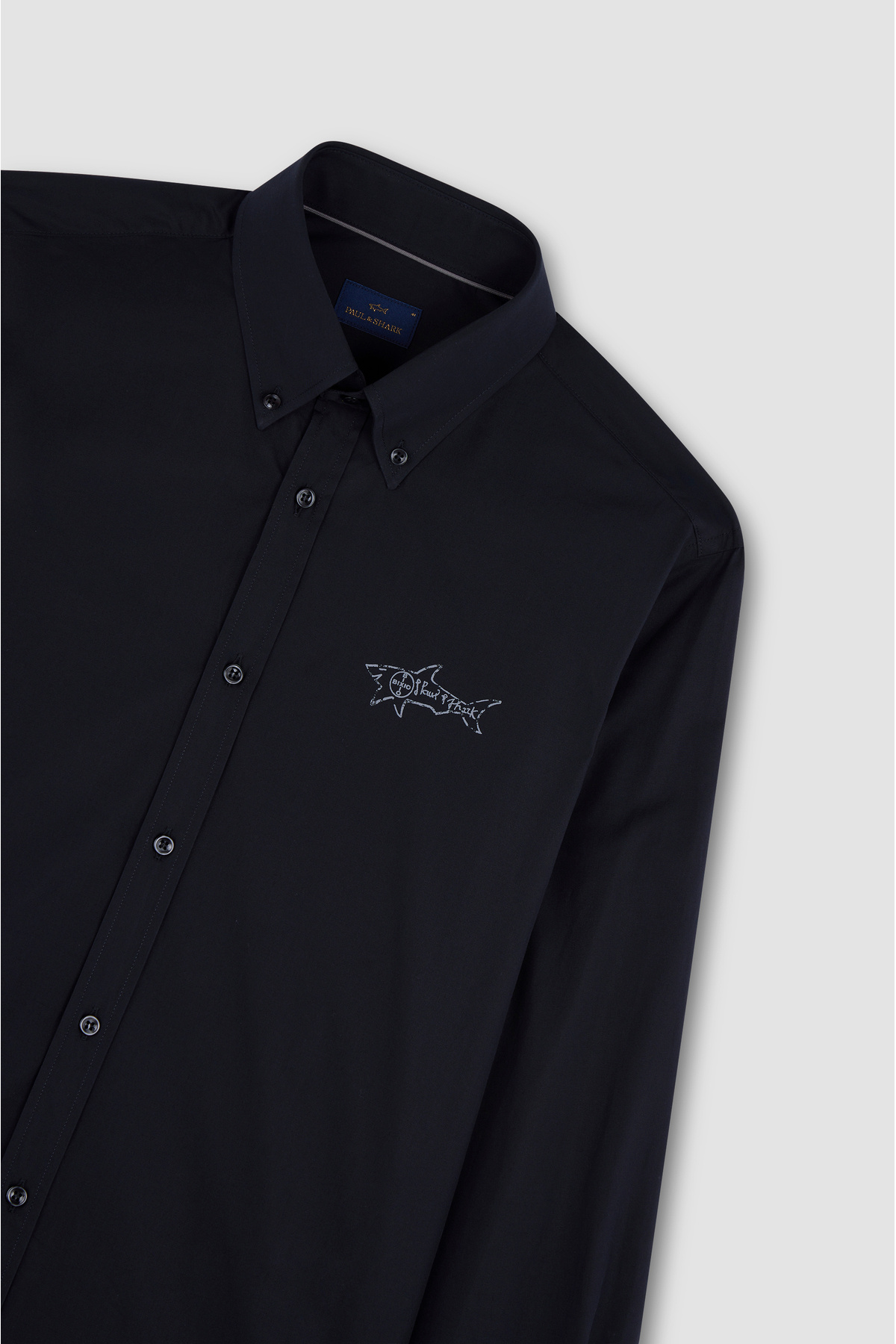 خرید اینترنتی پیراهن مردانه آستین بلند نخی مشکی اسلیم فیت با طرح کوسه در پشت ۲۵۴۱۳۵۱۷-۰۱۱ برند پال اند شارک Paul&Shark اورجینال از Wejaar نمایندگی و فروشگاه معتبر ترکیه