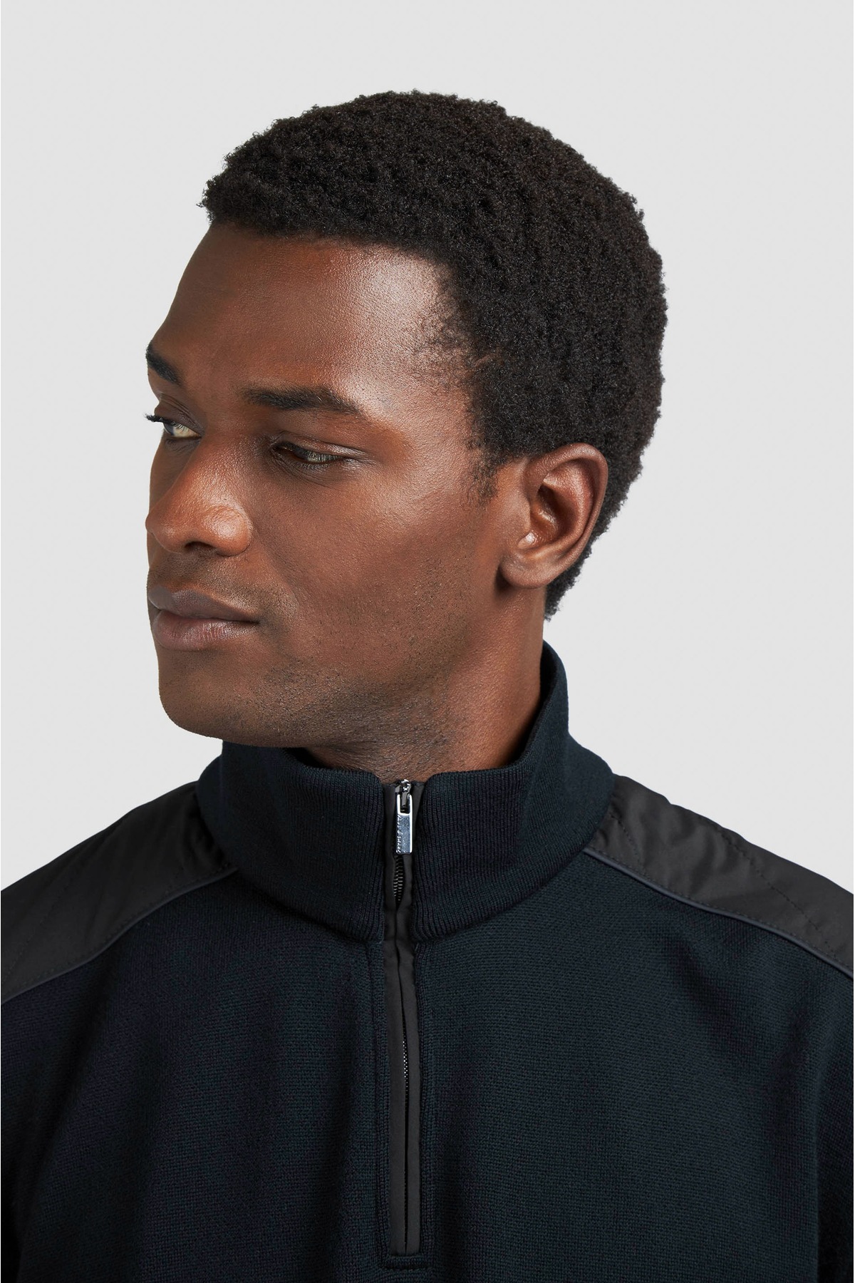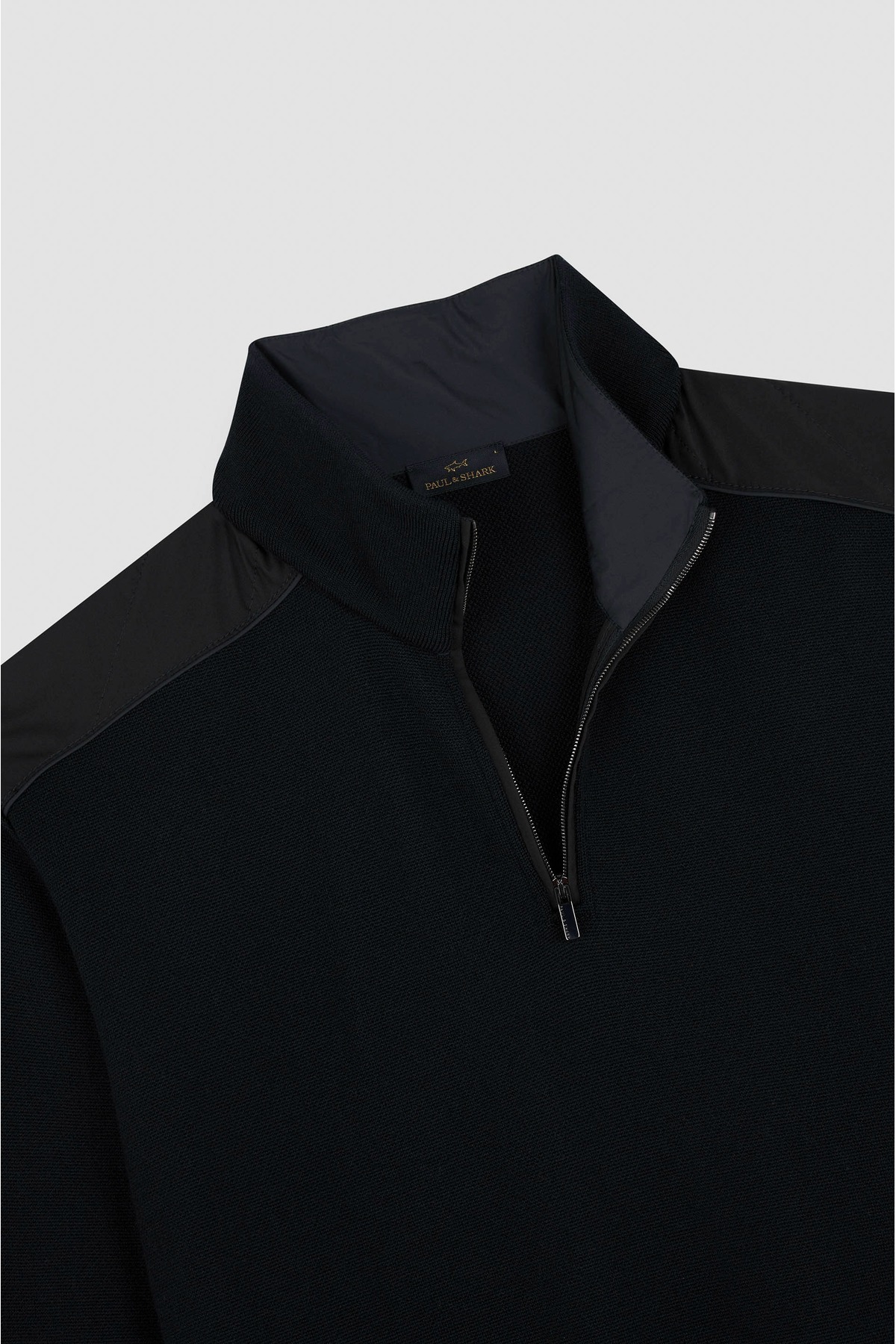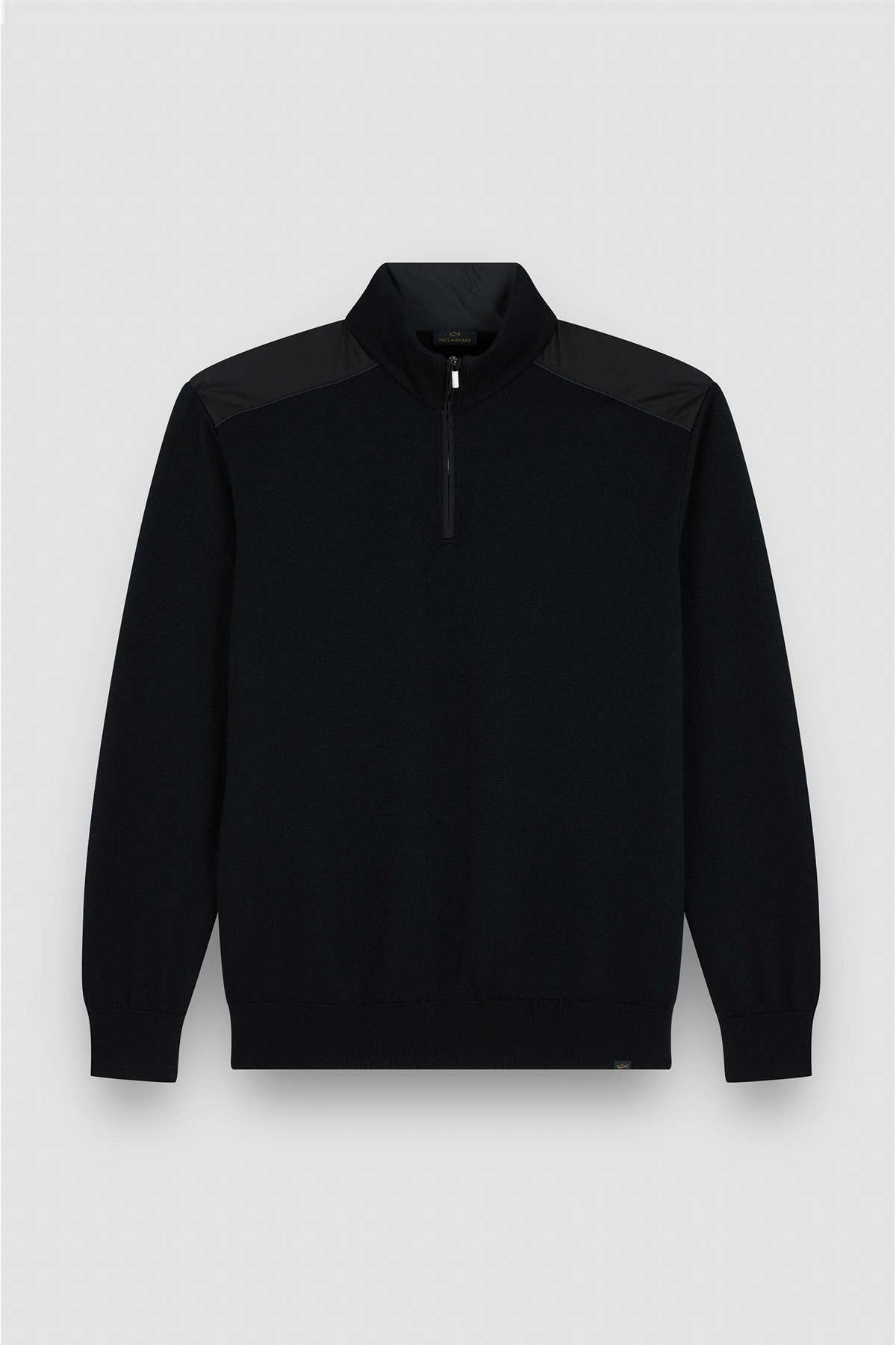 خرید اینترنتی ژاکت بافتنی مردانه آستین بلند ۱۰۰٪ پشمی، نیم زیپ، مشکی، کد ۱۵۳۱۱۱۳۱-۰۱۱ برند پال اند شارک Paul&Shark اورجینال از Wejaar نمایندگی ترکیه