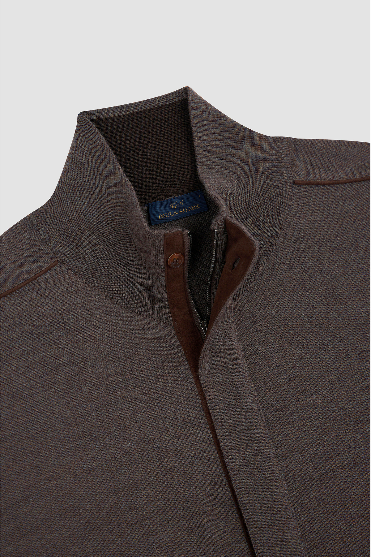 خرید اینترنتی ژاکت بافتنی مردانه آستین بلند قهوهای ۱۰۰٪ پشمی، یقه ایستاده، سایز معمولی، کد ۱۵۳۱۱۲۰۳-۳۶۵ برند پال اند شارک Paul&Shark اورجینال از Wejaar نمایندگی و فروشگاه معتبر ترکیه