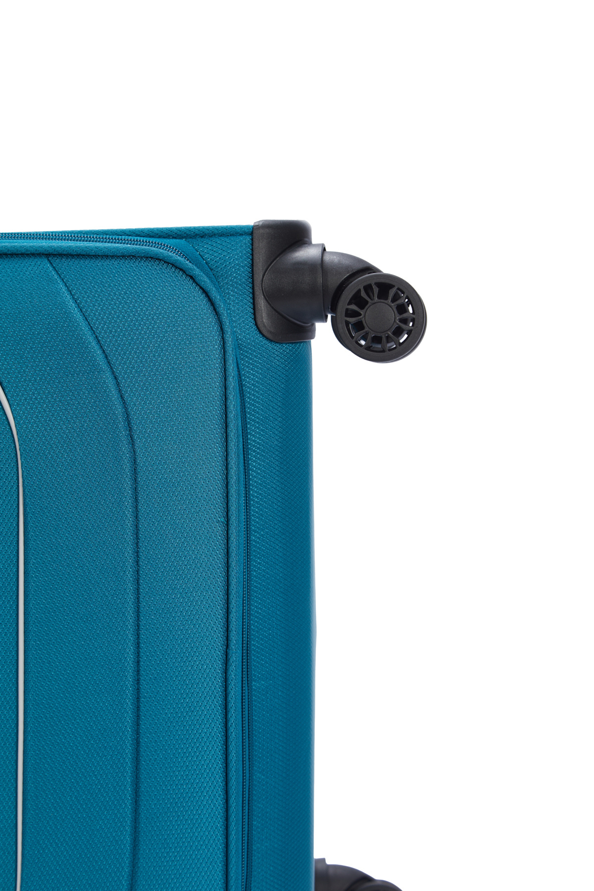 چهار چرخ دوتایی چرخان 360 درجه که از مواد لاستیکی-سیلیکونی ساخته شده اند که وزن را متعادل کرده و حمل آن را آسان می کند. پارچه فوق سبک. دسته قابل تنظیم تلسکوپی. سیستم قفل ترکیبی قابل تنظیم TSA. دسته حمل. تسمه های چمدان در دو محفظه که توسط یک جیب مشبک از هم جدا شده اند. ساختار بدنه سبک تر آن باعث می شود که نسبت به همتایان خود از لحاظ ظرفیت چمدان مناسب تر باشد.
