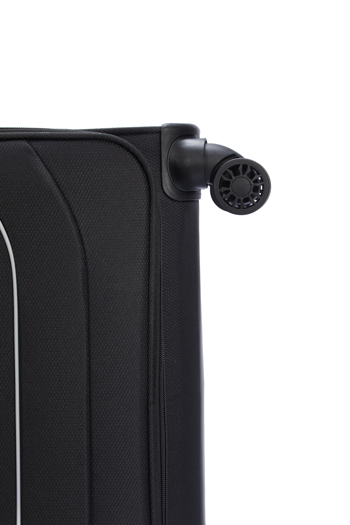 چهار چرخ دوتایی چرخان 360 درجه که از مواد لاستیکی-سیلیکونی ساخته شدهاند، وزن را متعادل میکنند و حمل آن را آسانتر میکنند. پارچه فوق سبک. دسته قابل تنظیم تلسکوپی. سیستم قفل ترکیبی قابل تنظیم TSA. دسته حمل. تسمه های چمدان در دو محفظه که توسط یک جیب مشبک از هم جدا شده اند. ساختار بدنه سبک تر آن باعث می شود که نسبت به همتایان خود از لحاظ ظرفیت چمدان مناسب تر باشد.