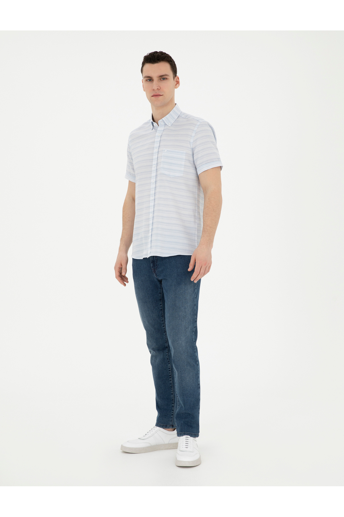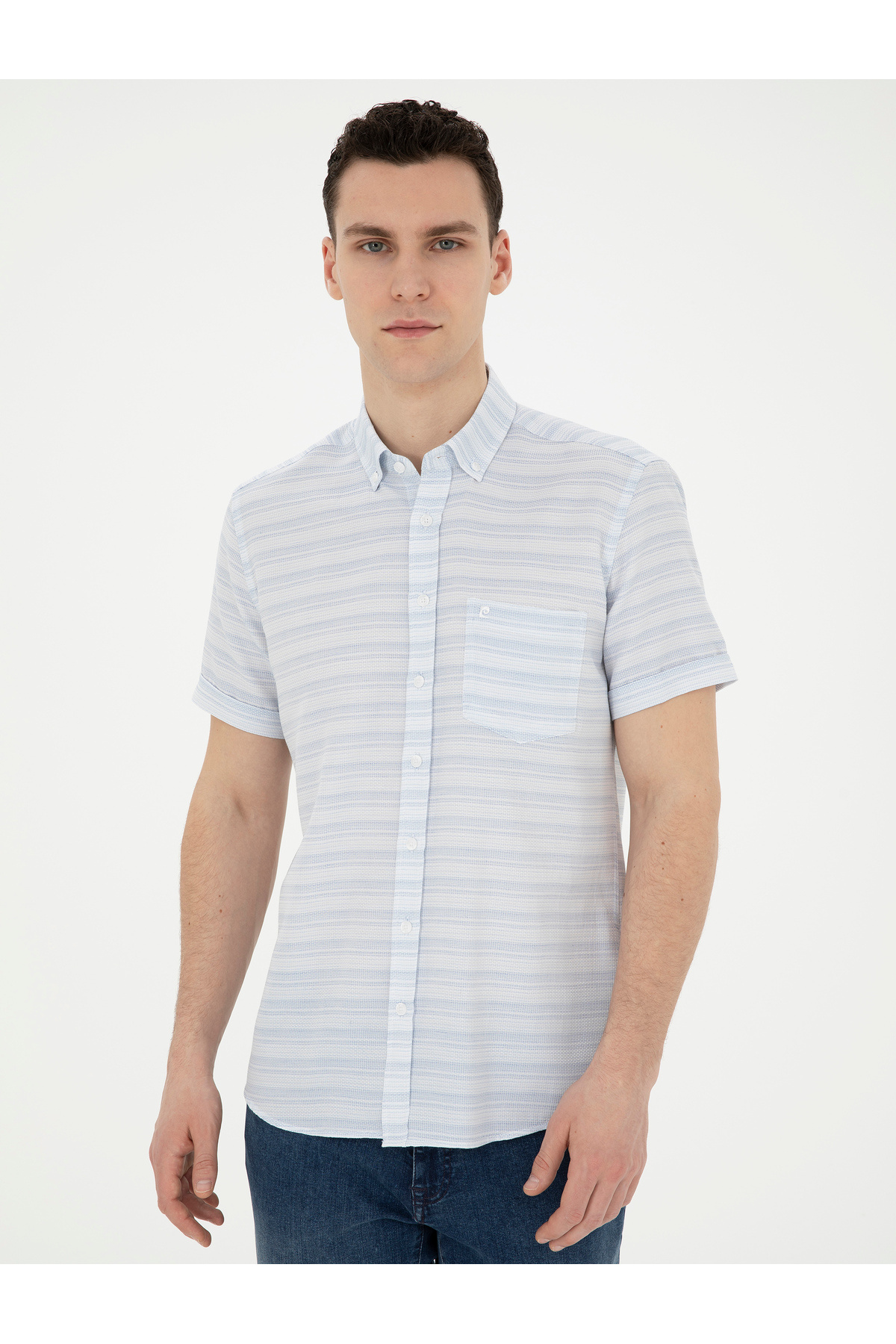 خرید اینترنتی پیراهن آستین کوتاه منظم به رنگ آبی روشن 50289412-VR003 برند پیر کاردین Pierre Cardin اورجینال از Pierre Cardin نمایندگی ترکیه