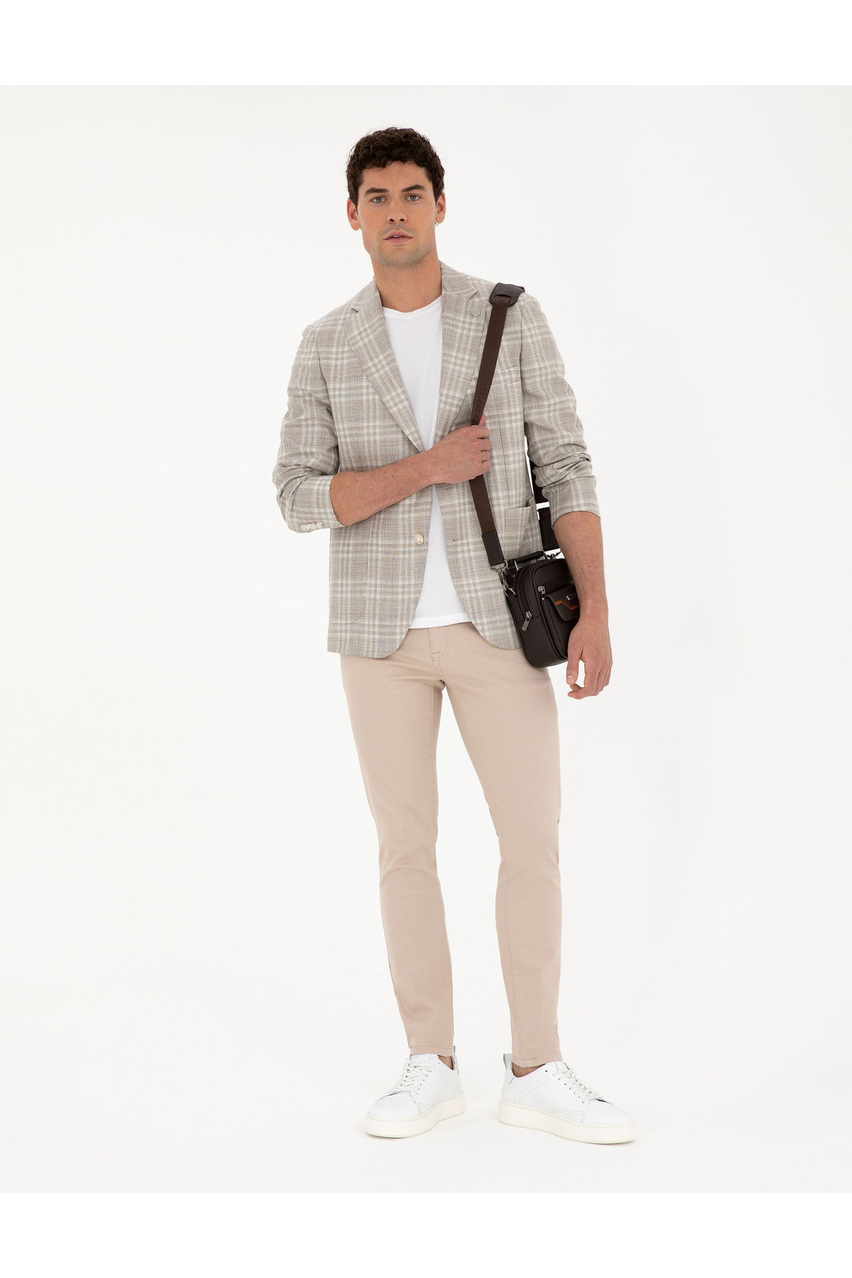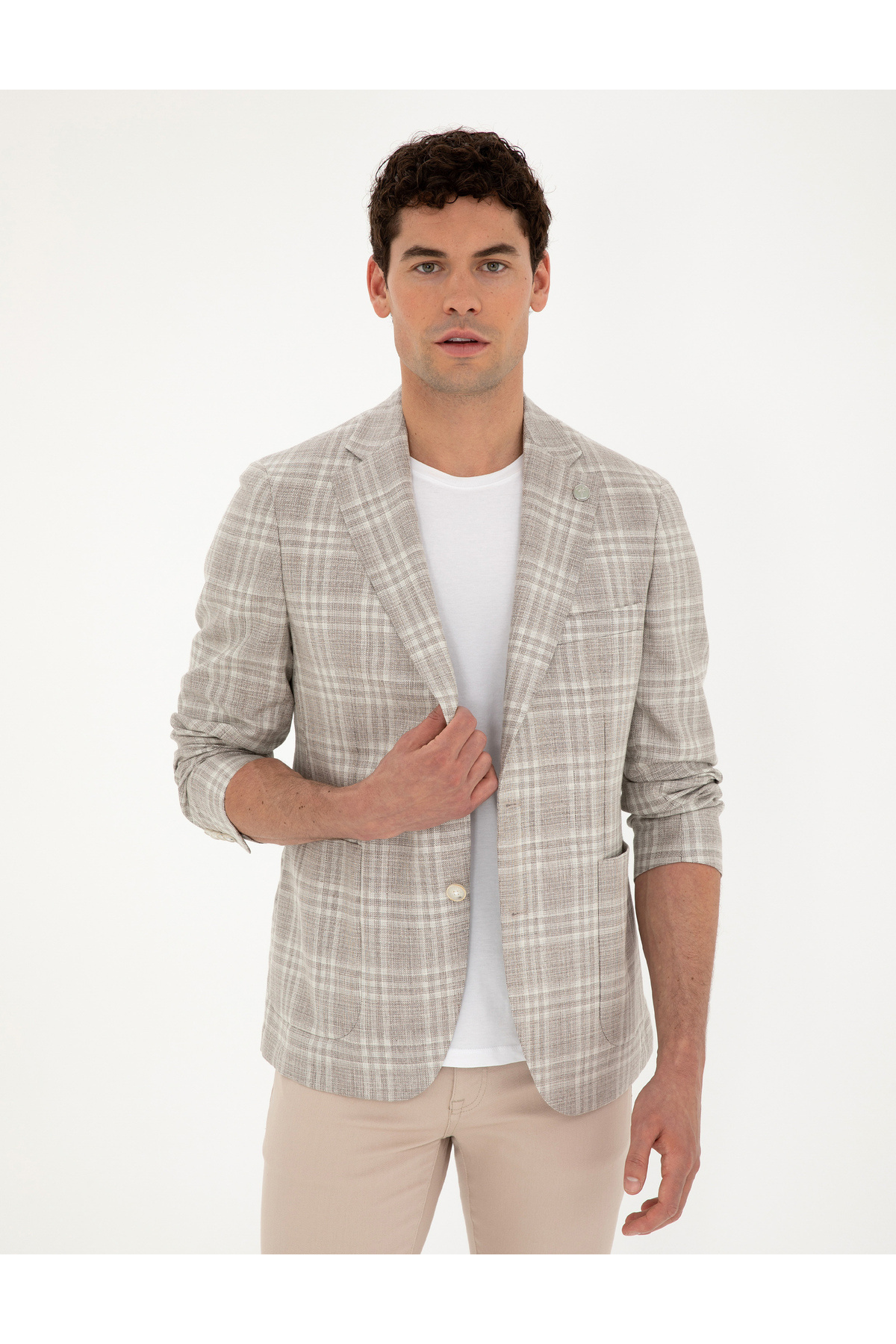 خرید اینترنتی ژاکت شطرنجی ترکیبی کتانی پشمی باریک بژ 50285195-VR011 برند پیر کاردین Pierre Cardin اورجینال از Pierre Cardin نمایندگی ترکیه