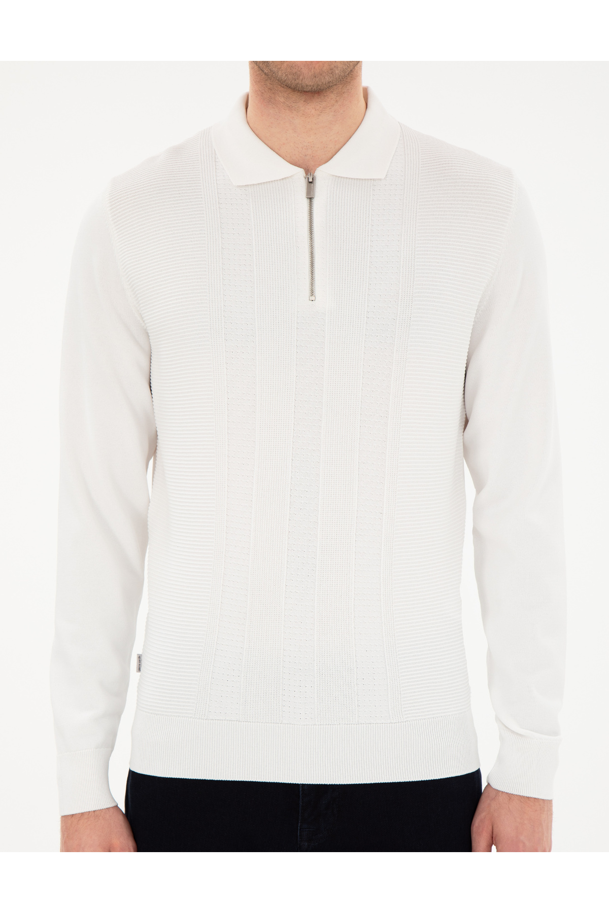 خرید اینترنتی ژاکت بافتنی یقه پولو زیپ دار Ecru Regular Fit 50296453-VR019 برند پیر کاردین Pierre Cardin اورجینال از Pierre Cardin نمایندگی ترکیه