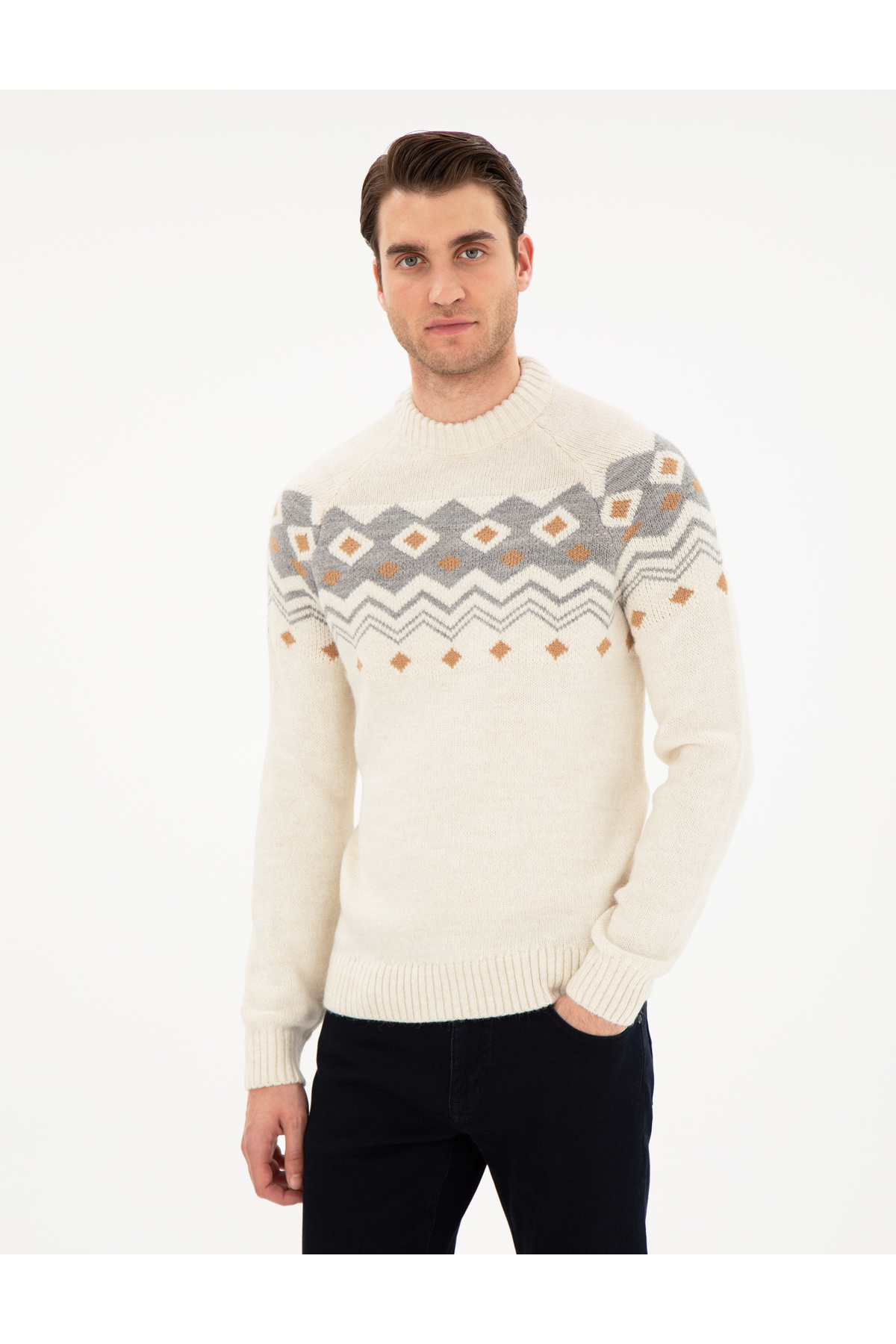خرید اینترنتی ژاکت بافتنی یقه باریک Ecru 50296448-VR019 برند پیر کاردین Pierre Cardin اورجینال از Pierre Cardin نمایندگی ترکیه