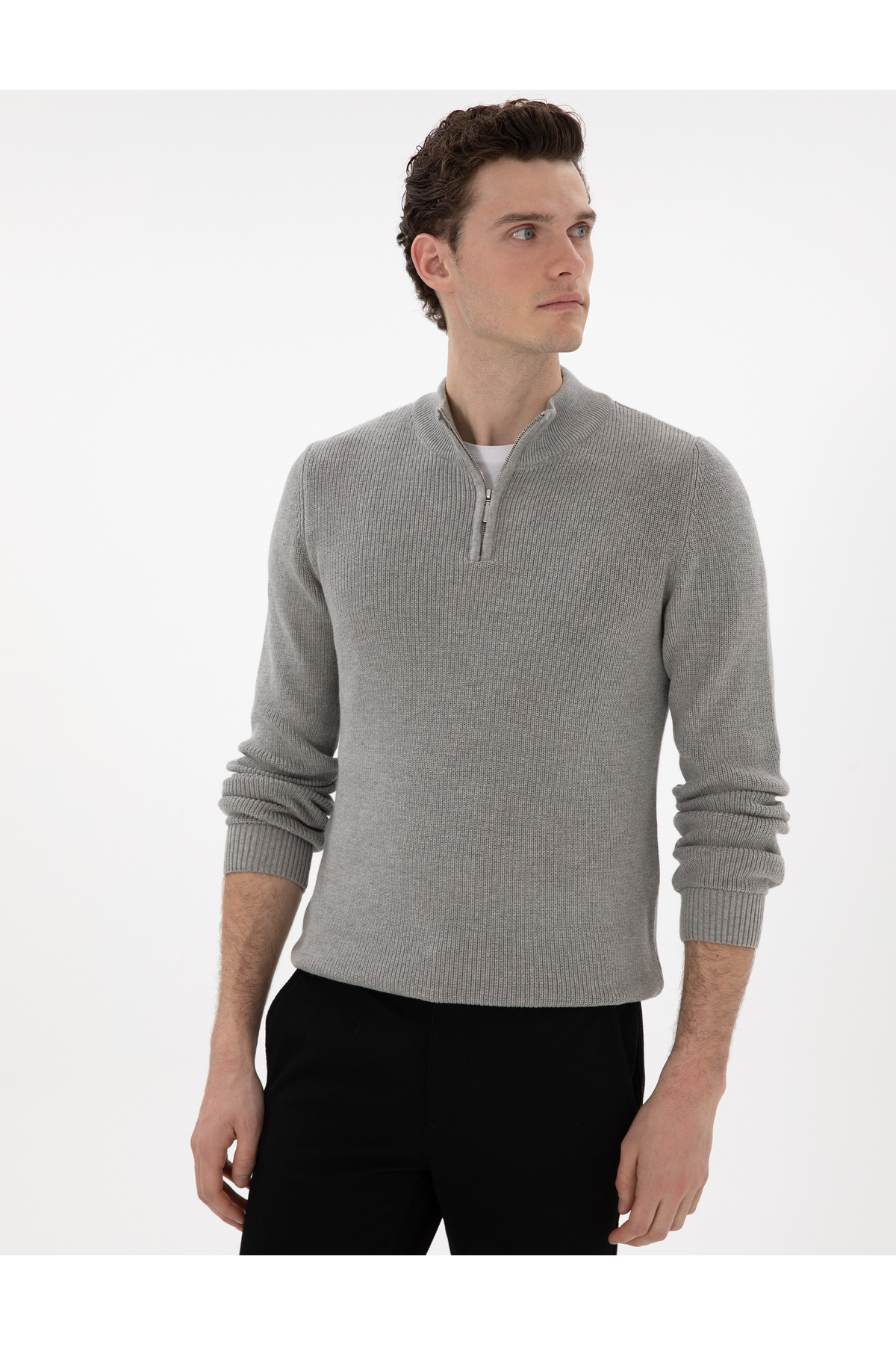 خرید اینترنتی ژاکت یقه ای زیپ دار باریک ملانژ خاکستری 50297123-VR159 برند پیر کاردین Pierre Cardin اورجینال از Pierre Cardin نمایندگی ترکیه
