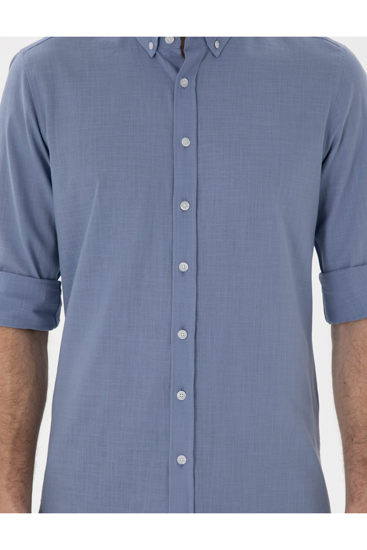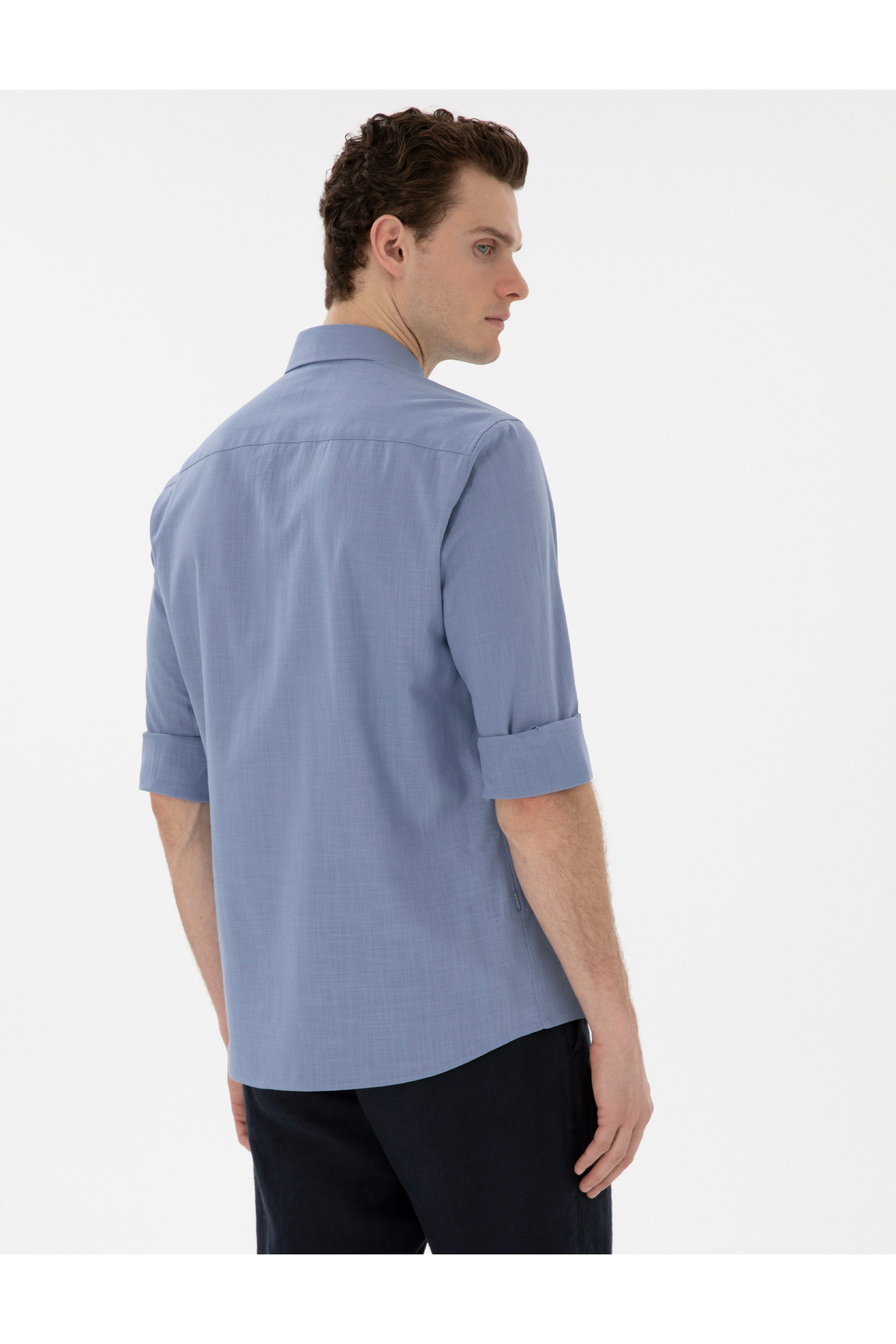 خرید اینترنتی پیراهن آستین بلند کتانی آبی باریک 50302710-VR036 برند پیر کاردین Pierre Cardin اورجینال از Pierre Cardin نمایندگی ترکیه