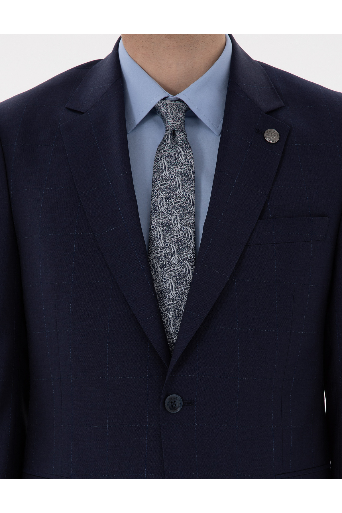 خرید اینترنتی کت و شلوار شطرنجی 100% پشمی باریک آبی ناوی 50302241-VR033 برند پیر کاردین Pierre Cardin اورجینال از Pierre Cardin نمایندگی ترکیه