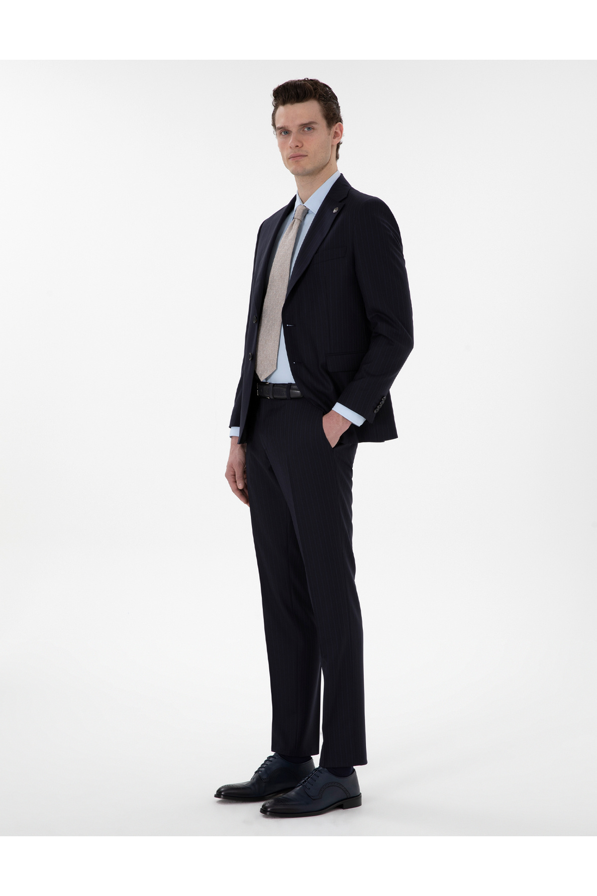 خرید اینترنتی کت و شلوار 50303796-VR033 راه راه 100% پشمی باریک آبی نای برند پیر کاردین Pierre Cardin اورجینال از Pierre Cardin نمایندگی ترکیه