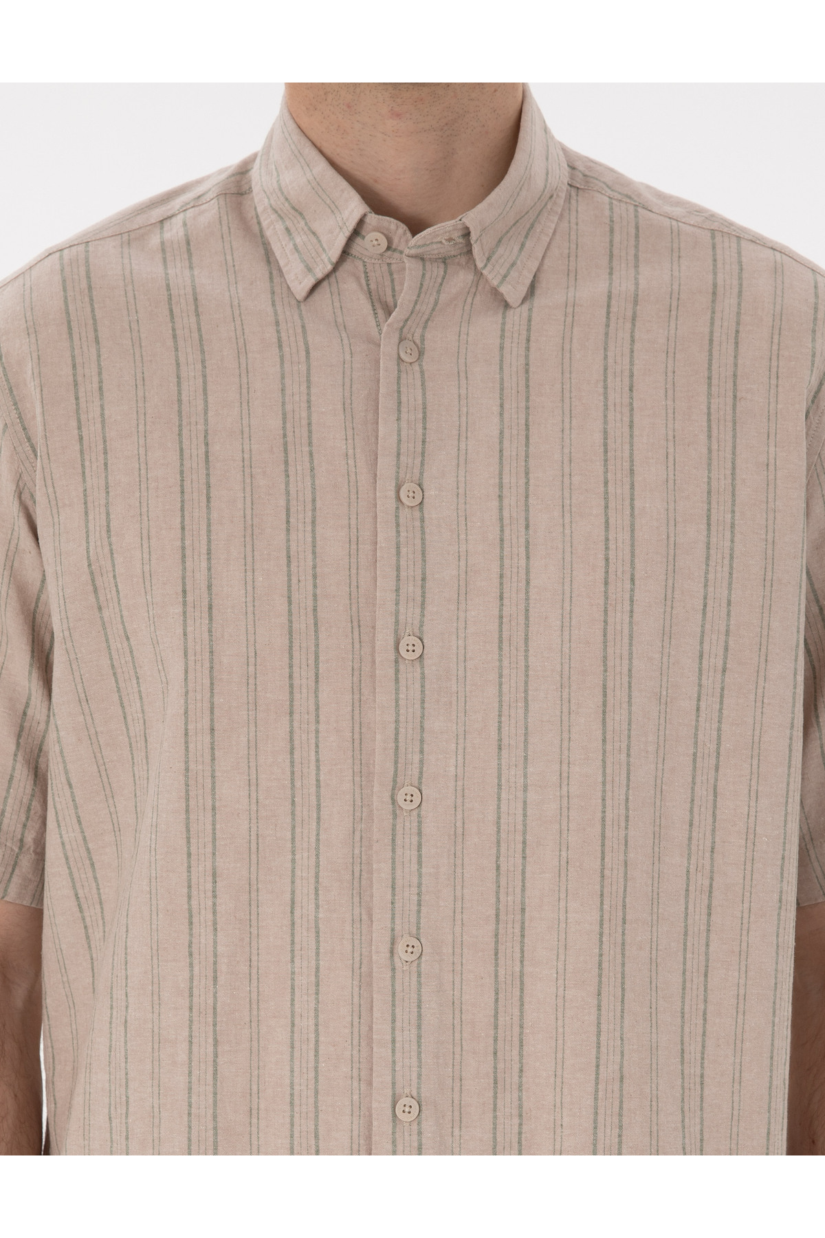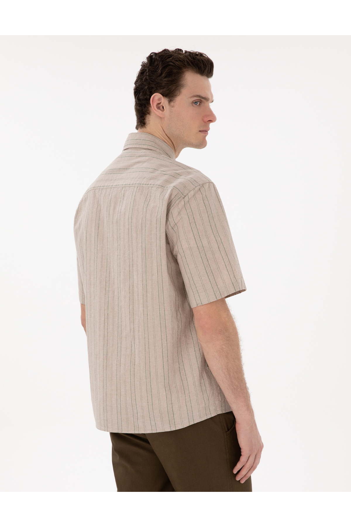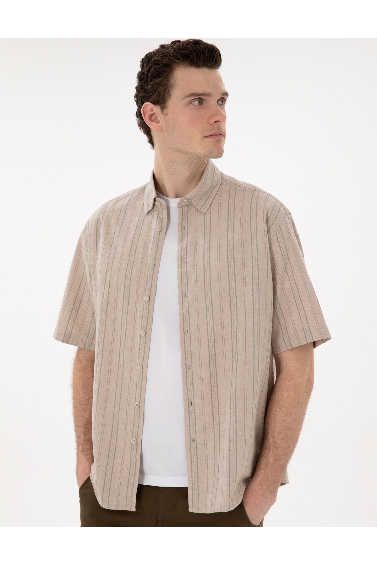 خرید اینترنتی پیراهن آستین کوتاه کتانی خاکی با سایز بزرگ 50301763-VR027 برند پیر کاردین Pierre Cardin اورجینال از Pierre Cardin نمایندگی ترکیه
