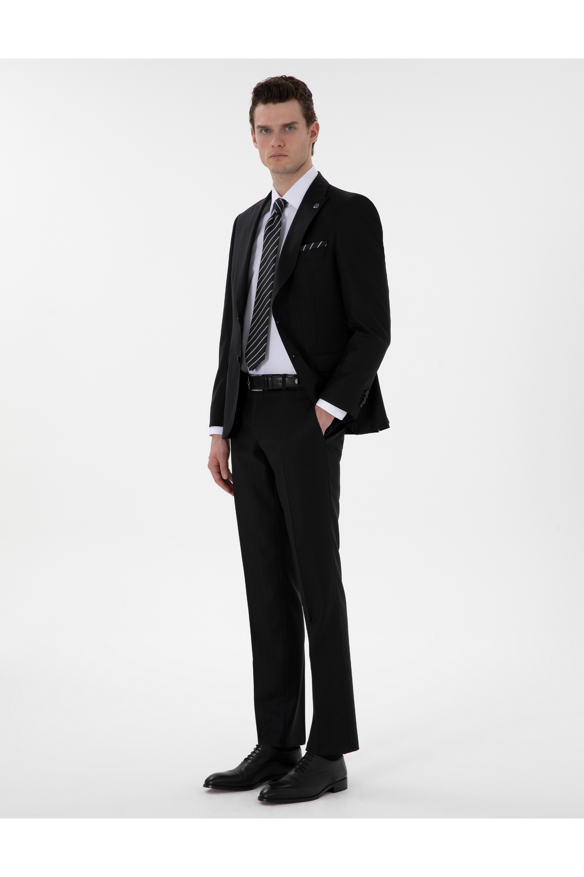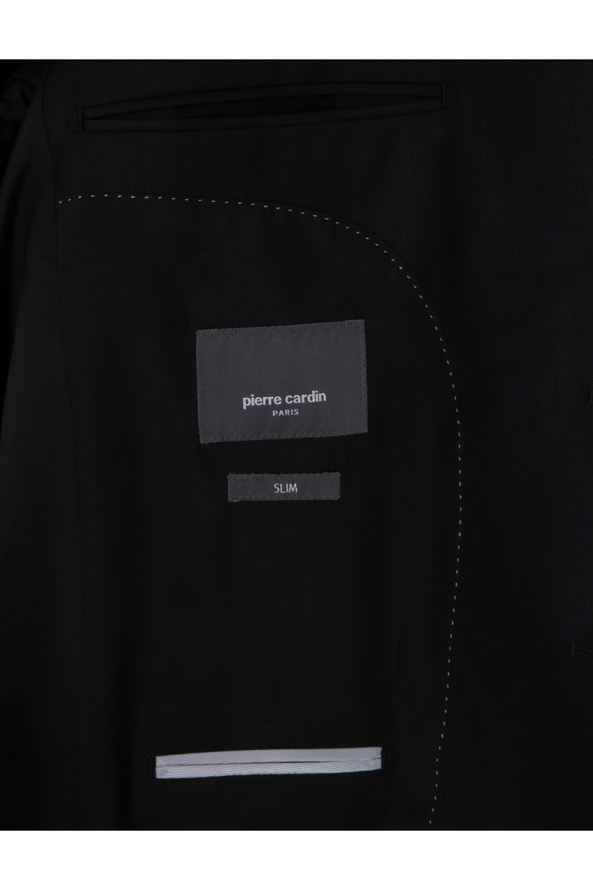 خرید اینترنتی کت و شلوار پشمی راه راه باریک فیت مشکی 50302278-VR046 برند پیر کاردین Pierre Cardin اورجینال از Pierre Cardin نمایندگی ترکیه