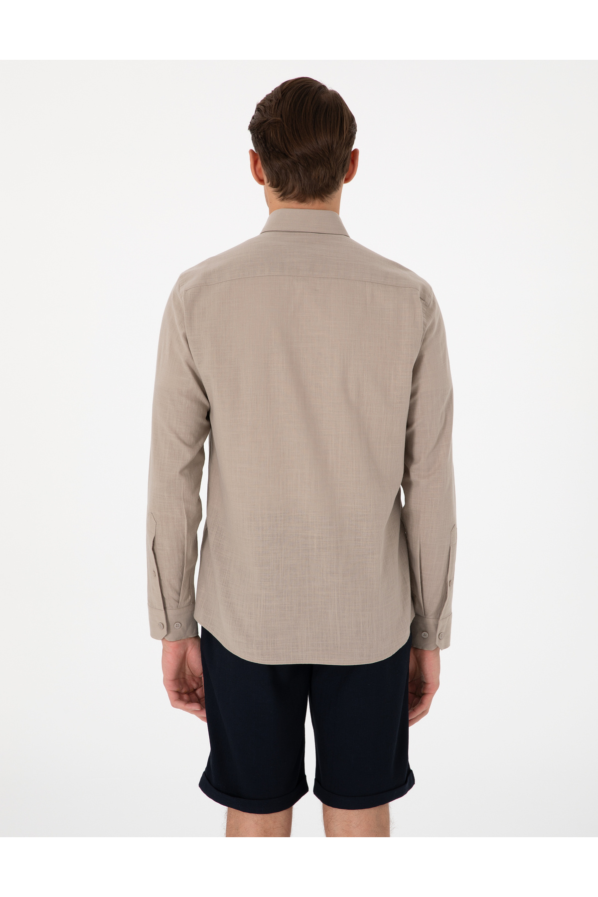 خرید اینترنتی پیراهن آستین بلند Mink Lenen Look Slim Fit 50307025-VR052 برند پیر کاردین Pierre Cardin اورجینال از Pierre Cardin نمایندگی ترکیه