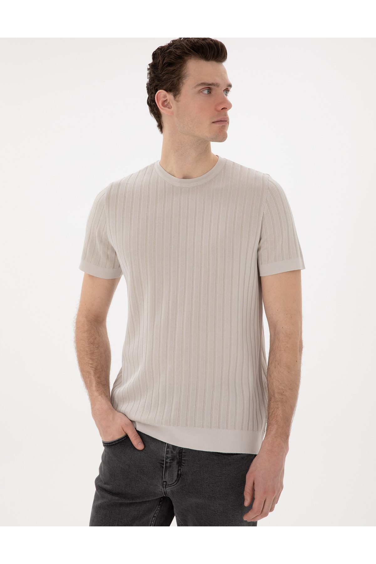 خرید اینترنتی تی شرت بافتنی یقه اسلیم فیت بژ 50305991-VR011 برند پیر کاردین Pierre Cardin اورجینال از Pierre Cardin نمایندگی ترکیه