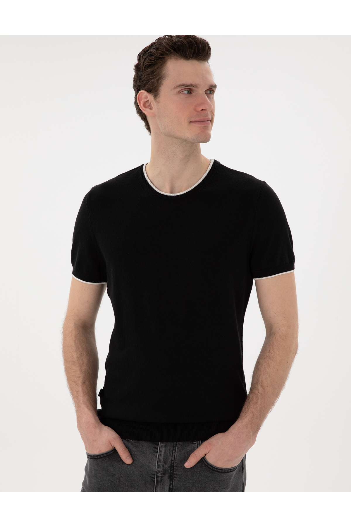 خرید اینترنتی تی شرت بافتنی یقه اسلیم فیت مشکی 50307401-VR046 برند پیر کاردین Pierre Cardin اورجینال از Pierre Cardin نمایندگی ترکیه