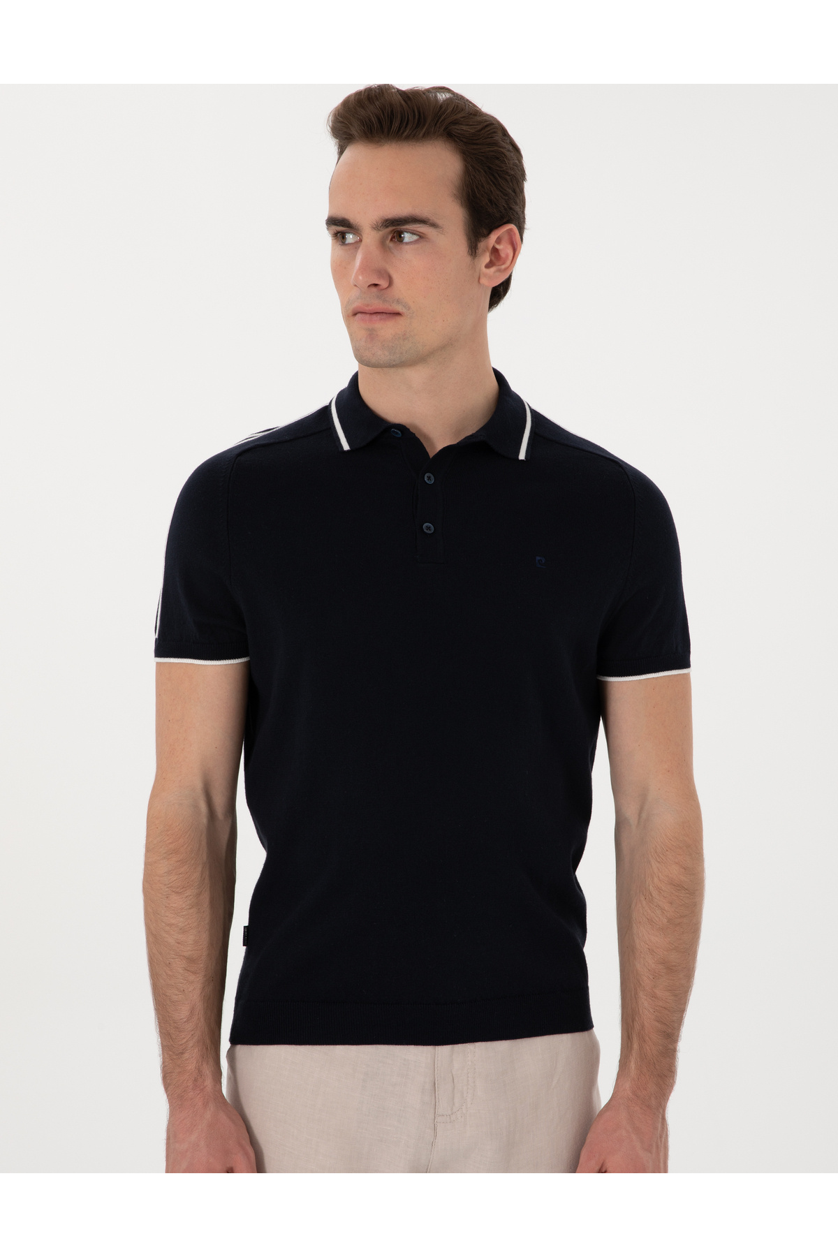خرید اینترنتی تی شرت یقه دار یقه دار دکمه دار آبی سرمه ای 50307314-VR033 برند پیر کاردین Pierre Cardin اورجینال از Pierre Cardin نمایندگی ترکیه