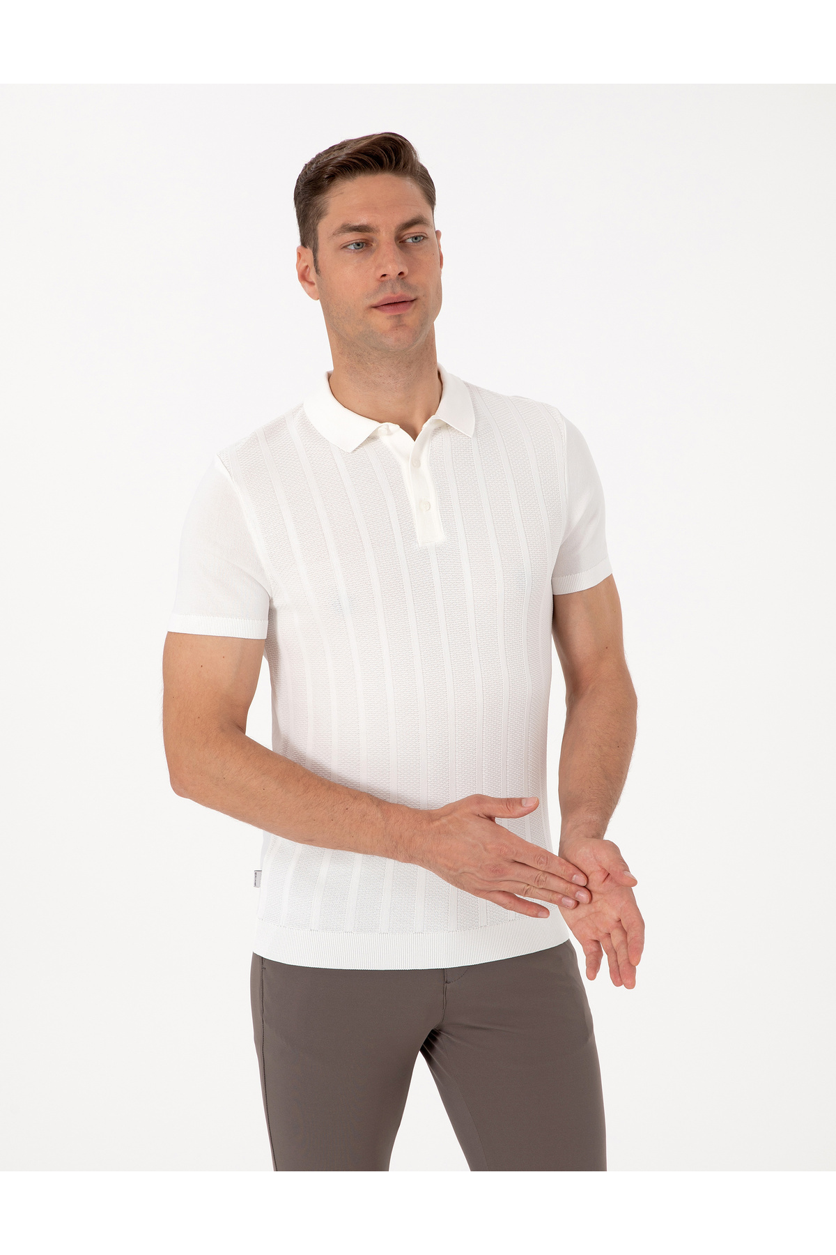 خرید اینترنتی تی شرت یقه دار یقه دار باریک Ecru 50306025-VR019 برند پیر کاردین Pierre Cardin اورجینال از Pierre Cardin نمایندگی ترکیه