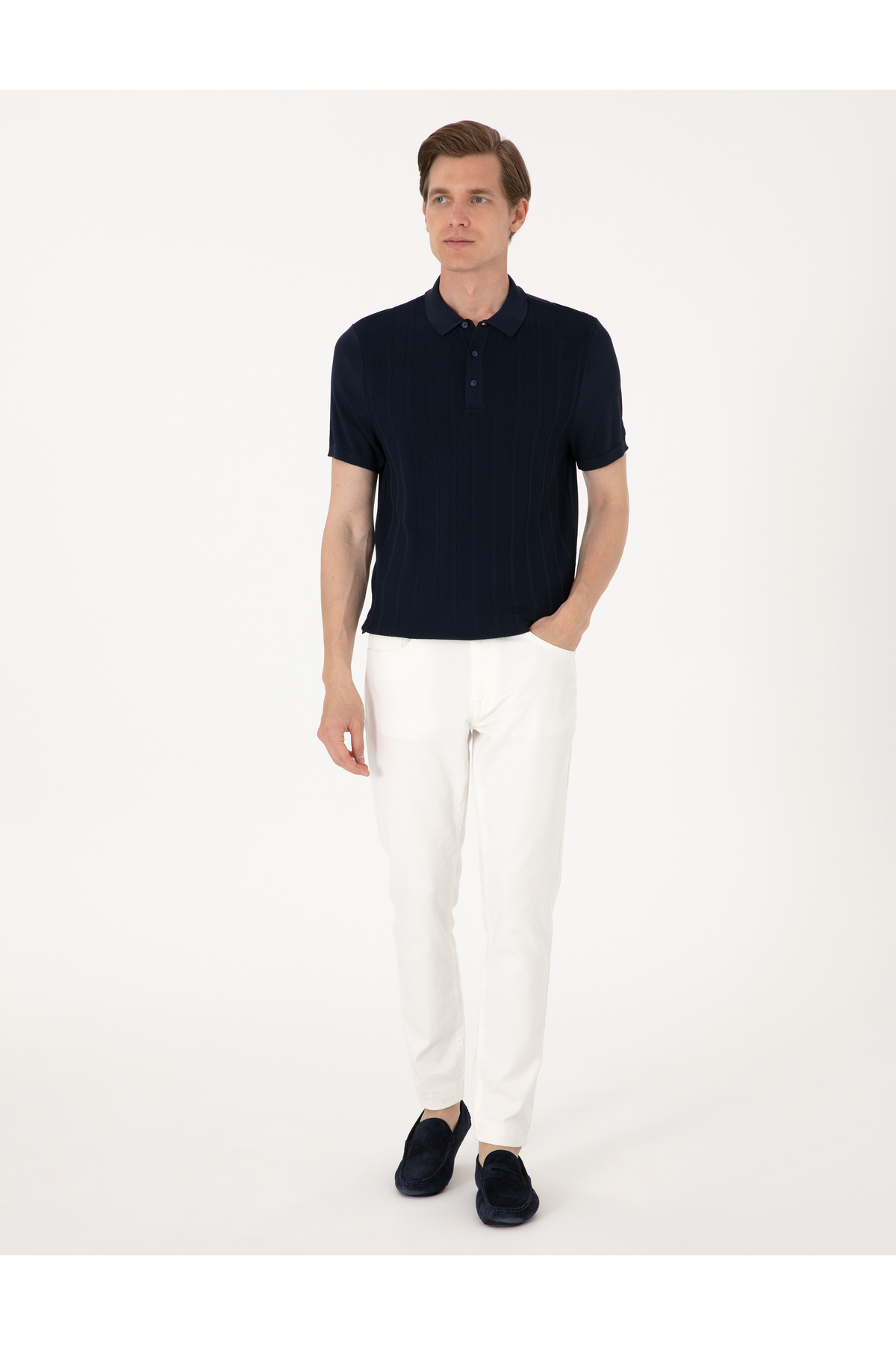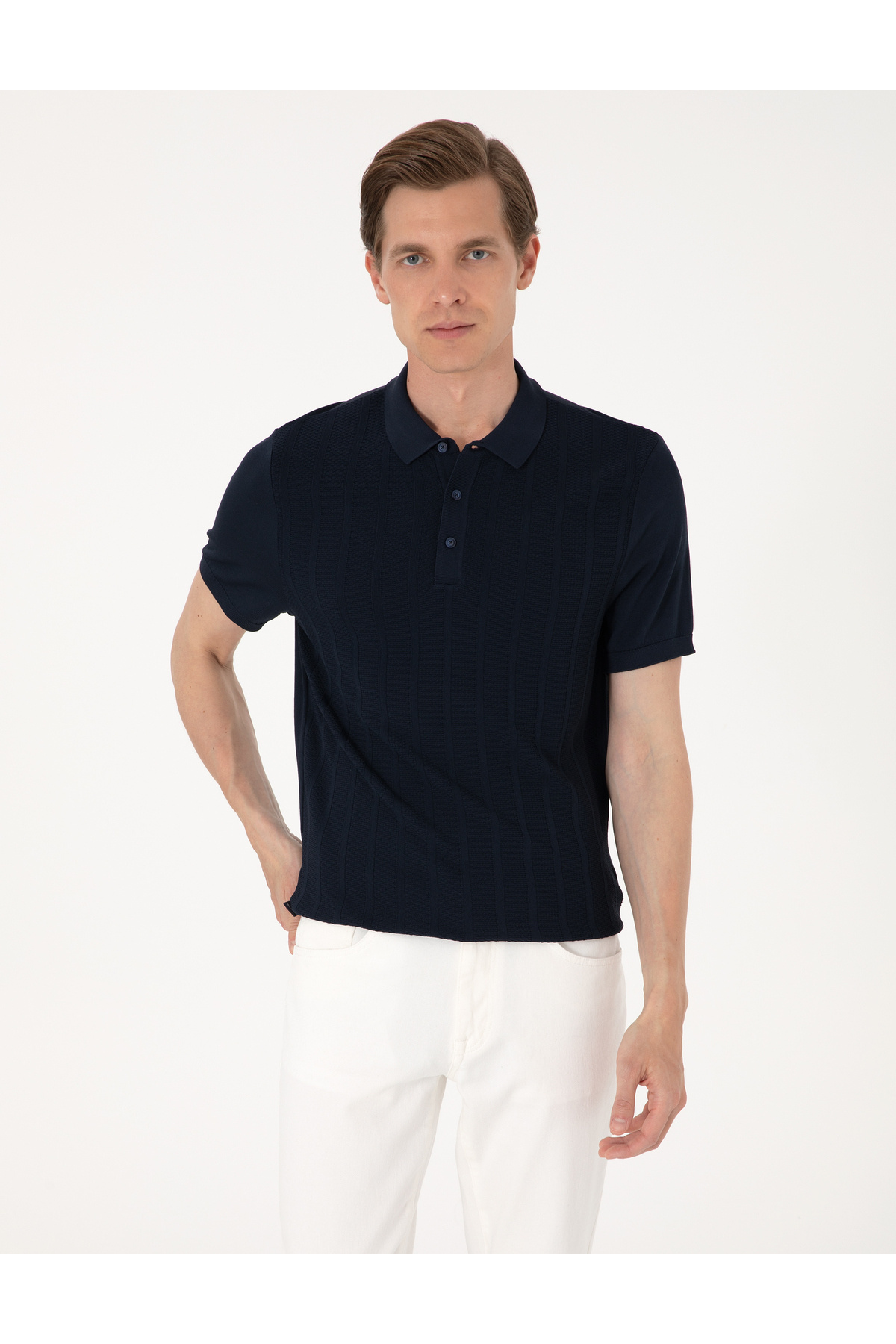 خرید اینترنتی تی شرت بافتنی یقه دار یقه دار باریک آبی سرمه ای 50306025-VR033 برند پیر کاردین Pierre Cardin اورجینال از Pierre Cardin نمایندگی ترکیه