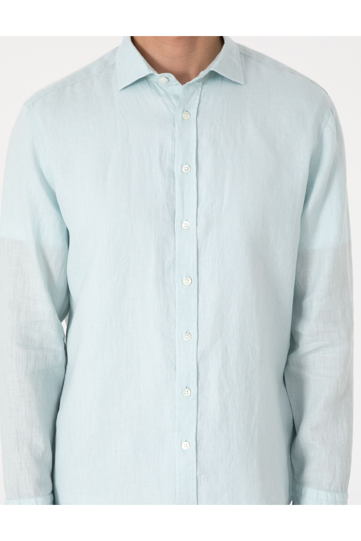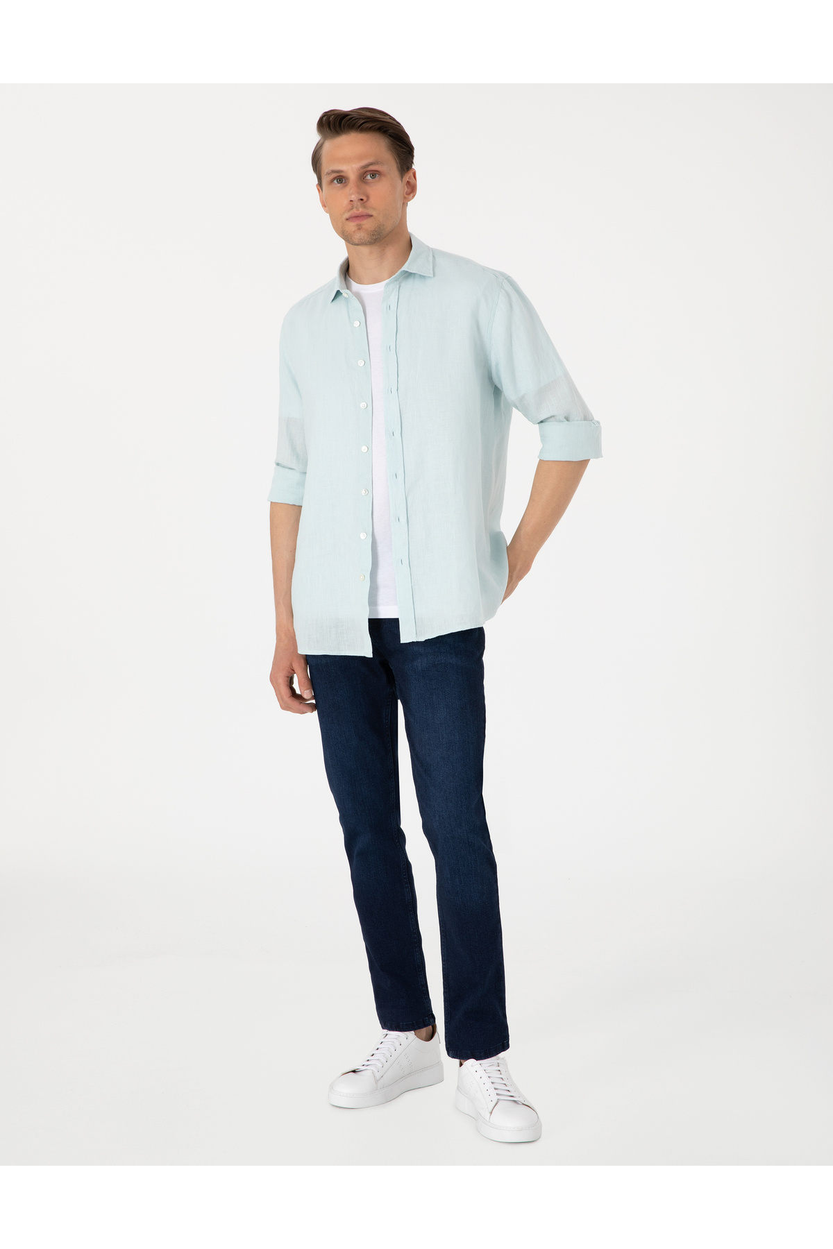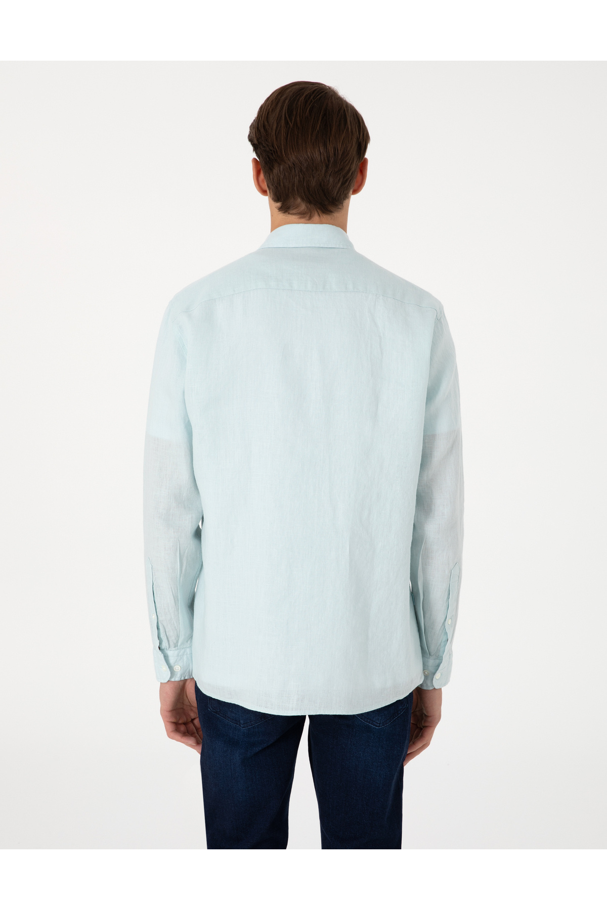 خرید اینترنتی پیراهن آستین بلند 50303293-VR115 معمولی 100% کتان سبز آکوا برند پیر کاردین Pierre Cardin اورجینال از Pierre Cardin نمایندگی ترکیه