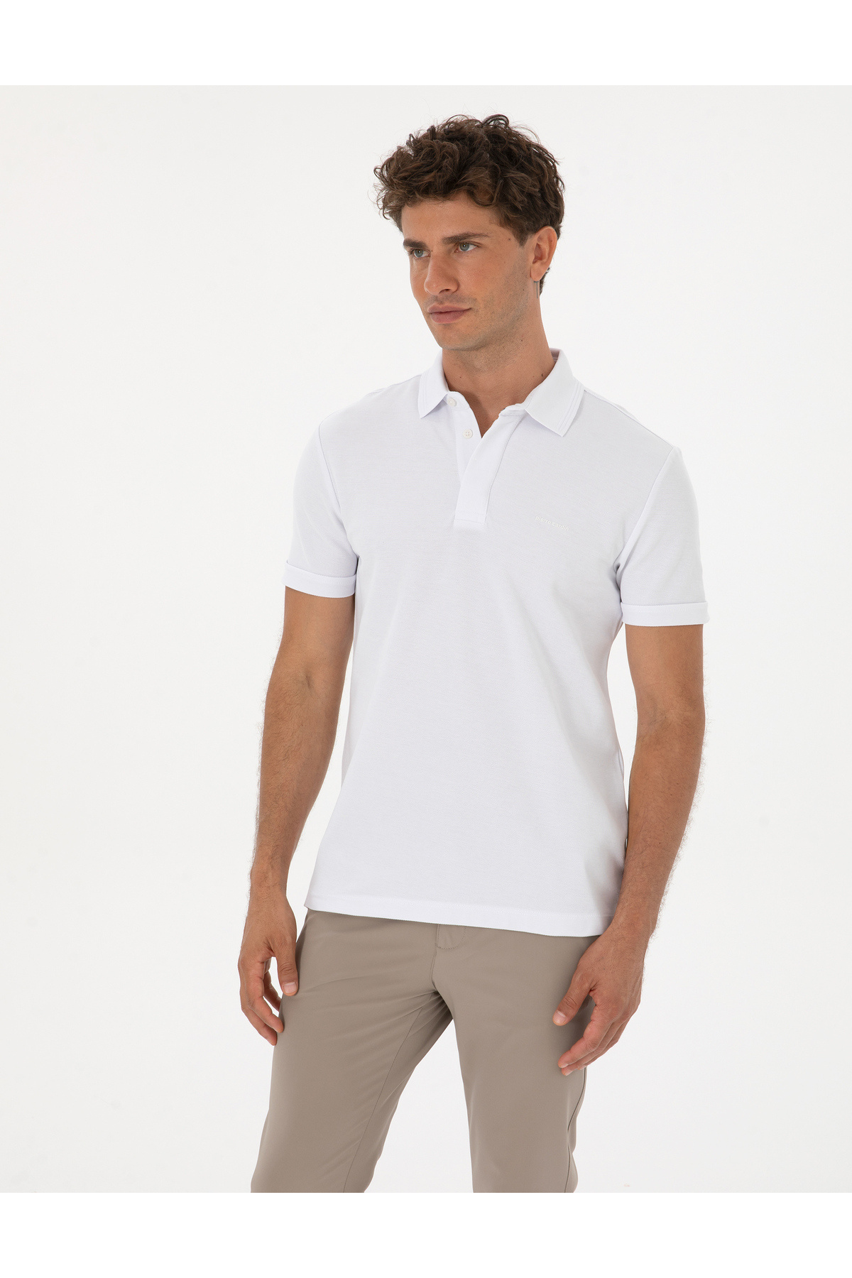 خرید اینترنتی تی شرت باریک سفید 100% پنبه ای غیر فر با یقه پولو آمریکایی پایه 50306154-VR013 برند پیر کاردین Pierre Cardin اورجینال از Pierre Cardin نمایندگی ترکیه