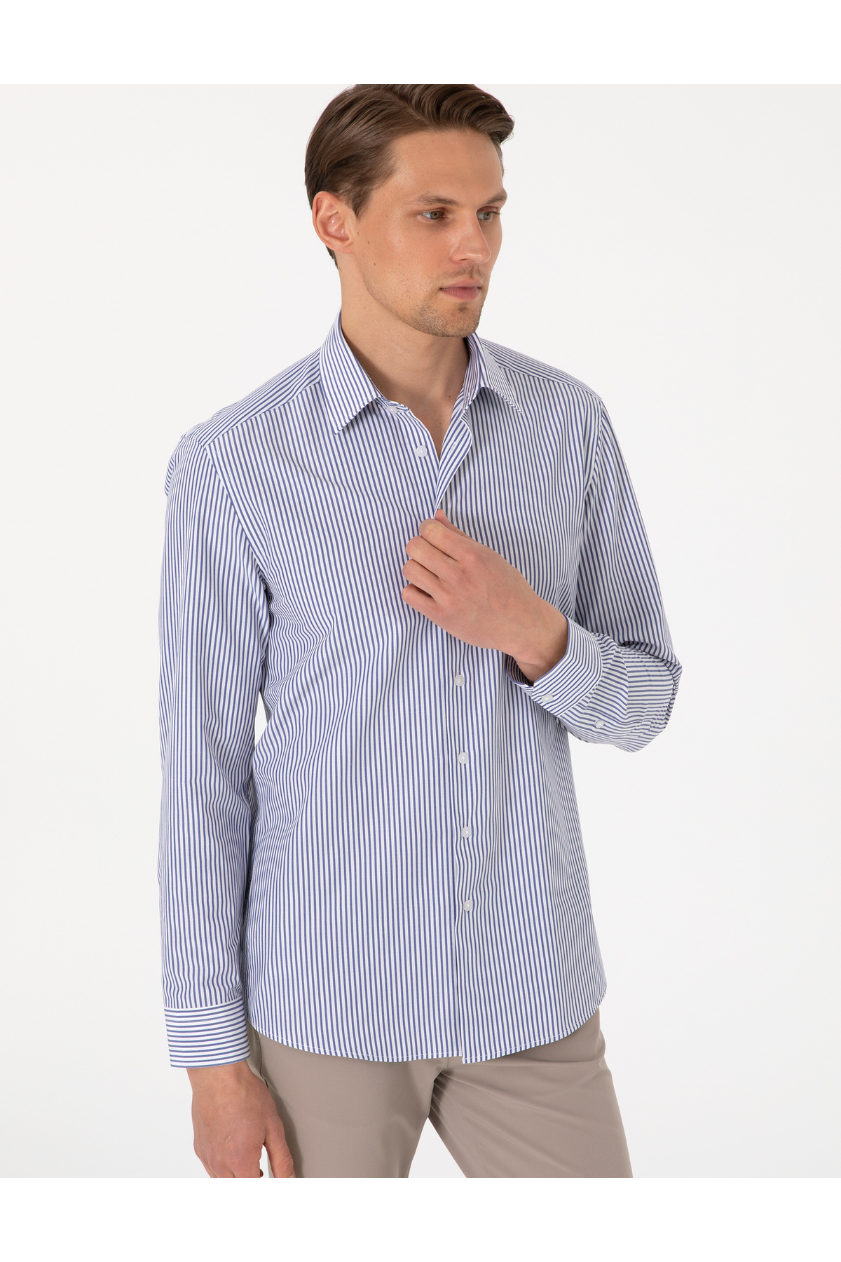 خرید اینترنتی پیراهن آستین بلند راه راه آبی باریک 50307142-VR036 برند پیر کاردین Pierre Cardin اورجینال از Pierre Cardin نمایندگی ترکیه