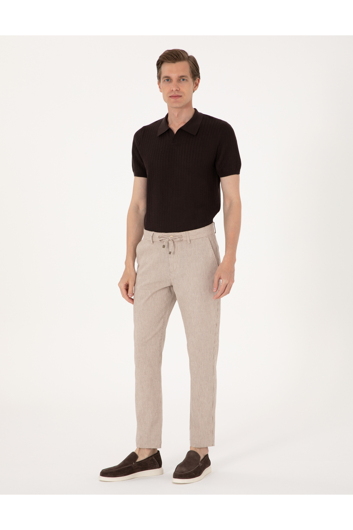 خرید اینترنتی شلوار برزنتی راه راه بند کمری ترکیبی کتانی بژ باریک 50301775-VR011 برند پیر کاردین Pierre Cardin اورجینال از Pierre Cardin نمایندگی ترکیه