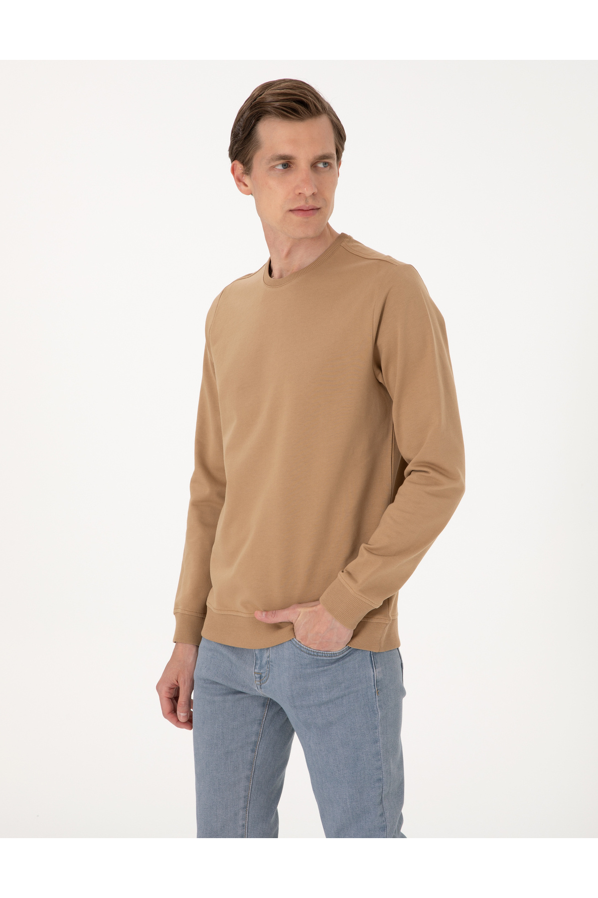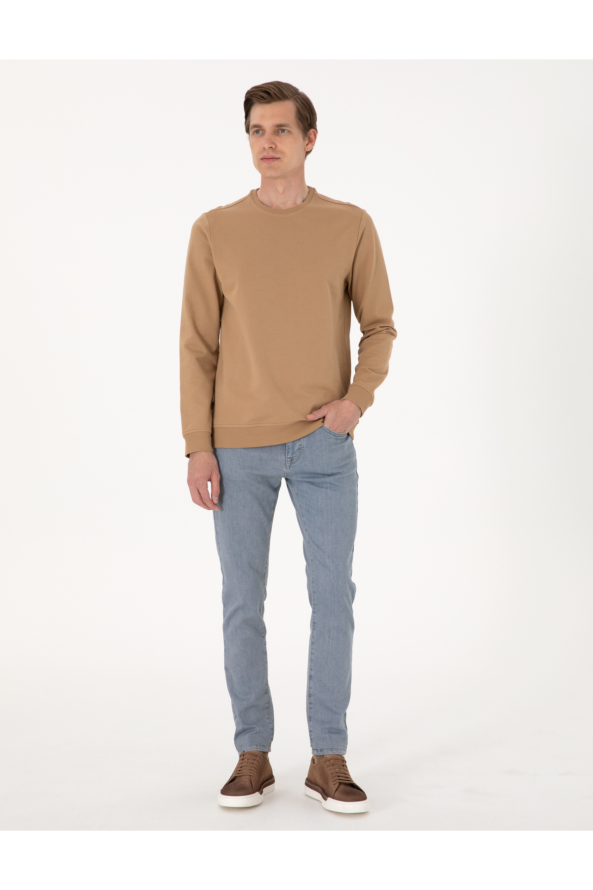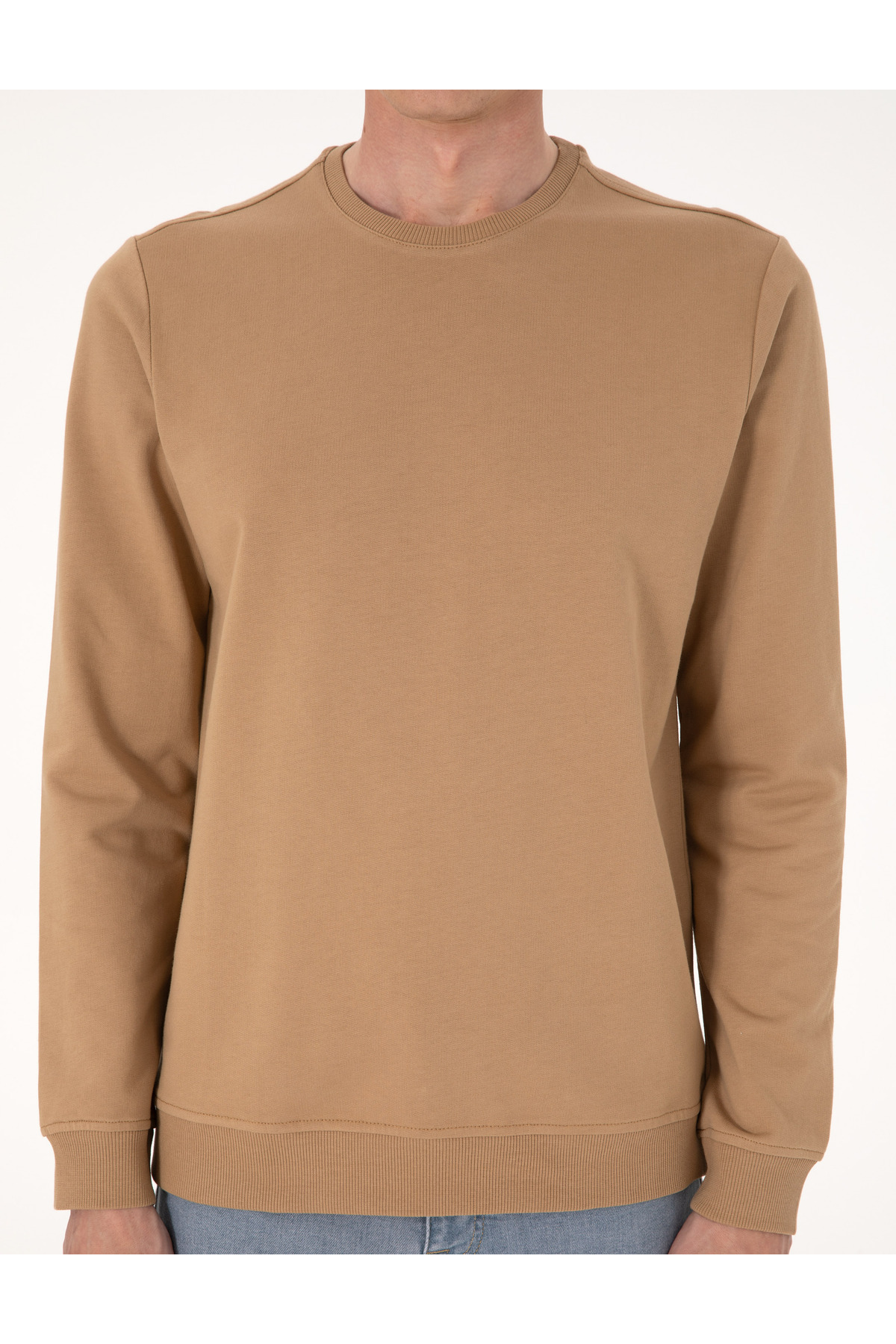 خرید اینترنتی سویشرت معمولی یقه خدمه با دو نخ قهوه ای روشن 50314054-VR002 برند پیر کاردین Pierre Cardin اورجینال از Pierre Cardin نمایندگی ترکیه