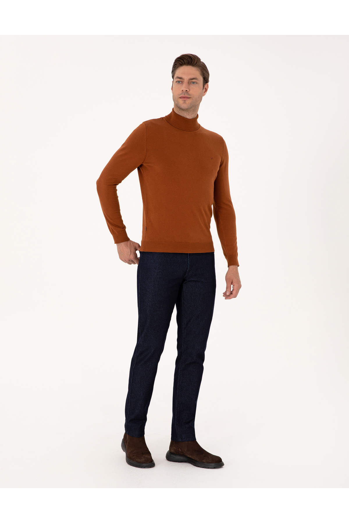 خرید اینترنتی ژاکت بافتنی پایه باریک قهوه ای یقه اسلیم 50314202-VR040 برند پیر کاردین Pierre Cardin اورجینال از Pierre Cardin نمایندگی ترکیه