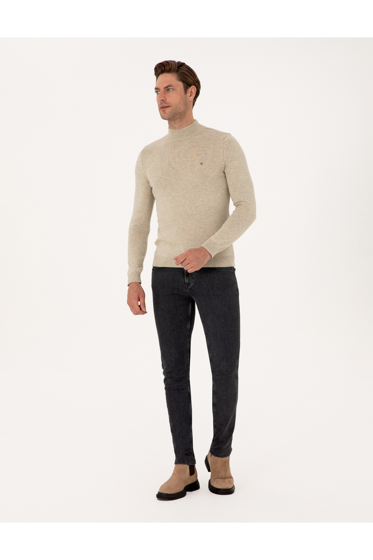 خرید اینترنتی Sand Melange Slim Fit Half Turtlent Basic ژاکت بافتنی 50314176-VR123 برند پیر کاردین Pierre Cardin اورجینال از Pierre Cardin نمایندگی ترکیه