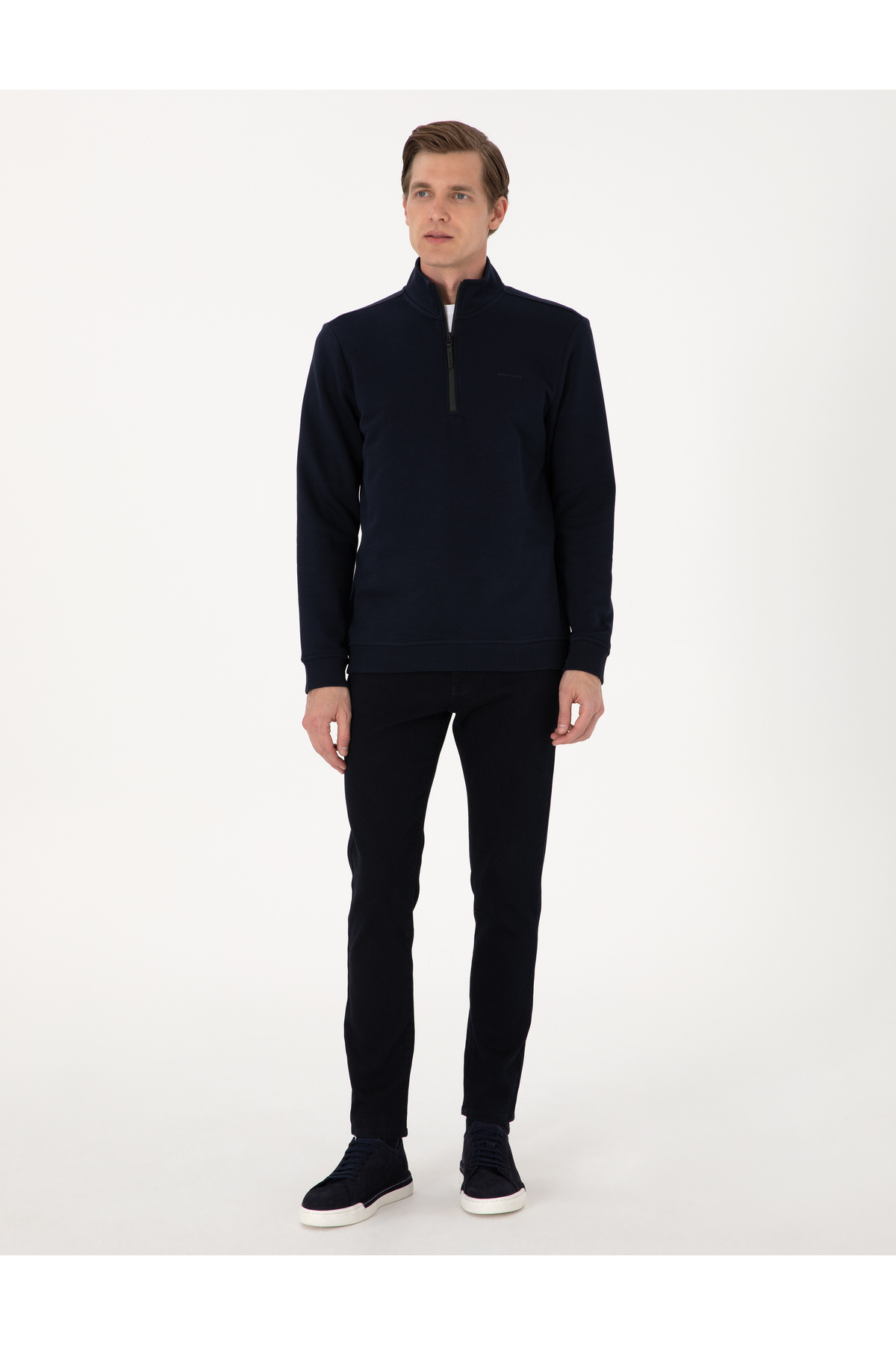 خرید اینترنتی سویشرت پایه یقه ای زیپ دار معمولی 3 نخی آبی ناوی 50314044-VR033 برند پیر کاردین Pierre Cardin اورجینال از Pierre Cardin نمایندگی ترکیه