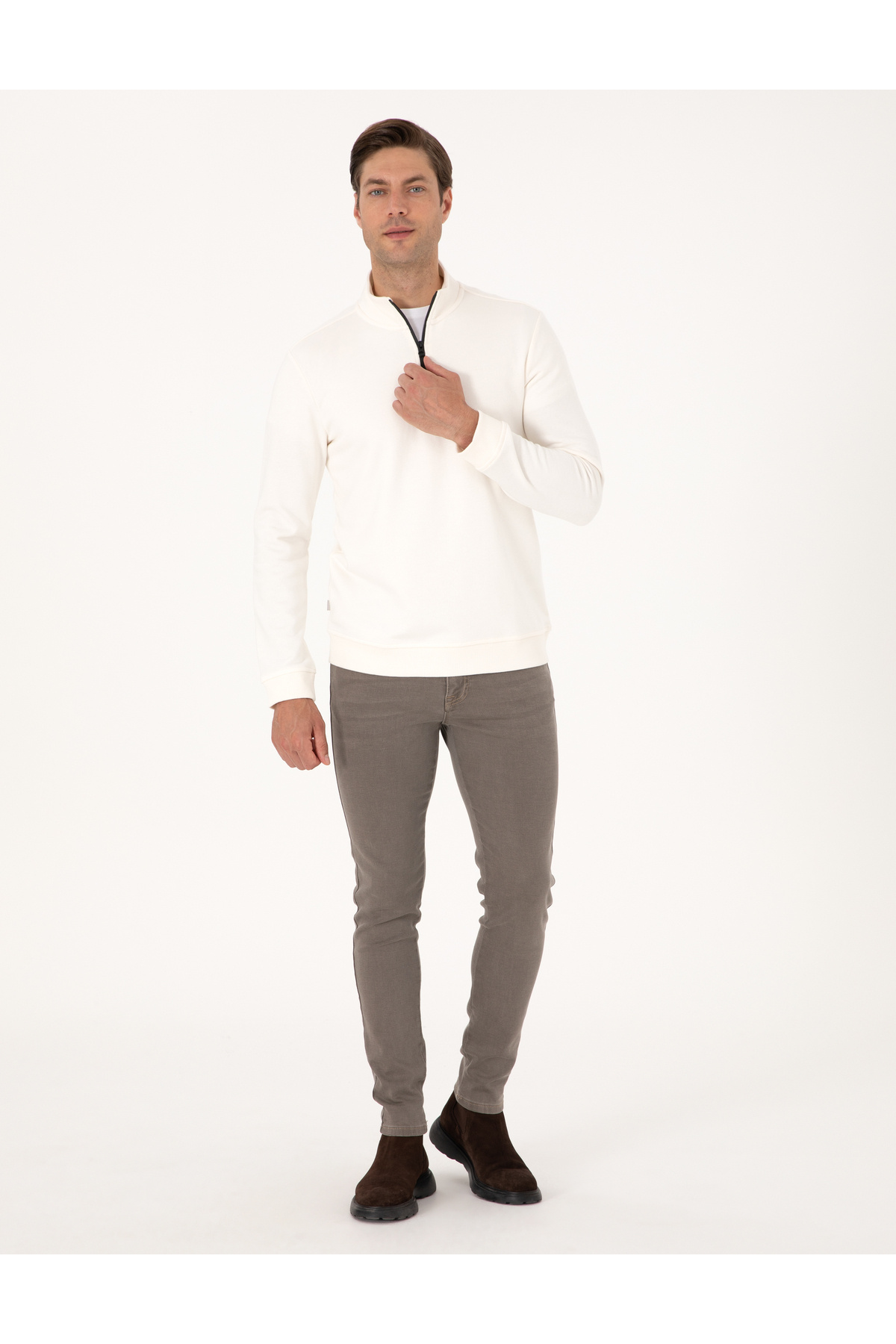 خرید اینترنتی سویشرت پایه یقه ای زیپ دار معمولی 3 نخ اکرو 50314044-VR019 برند پیر کاردین Pierre Cardin اورجینال از Pierre Cardin نمایندگی ترکیه