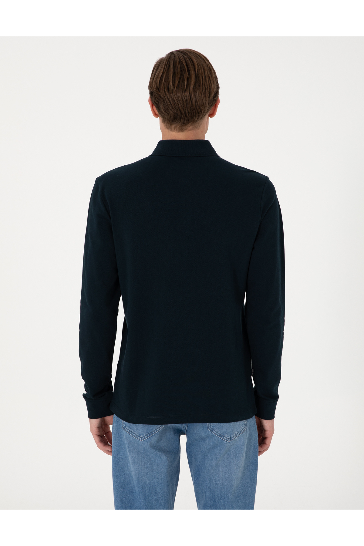 خرید اینترنتی سویشرت پولو با یقه غیر رولینگ باریک آبی سرمه ای 50314048-VR033 برند پیر کاردین Pierre Cardin اورجینال از Pierre Cardin نمایندگی ترکیه