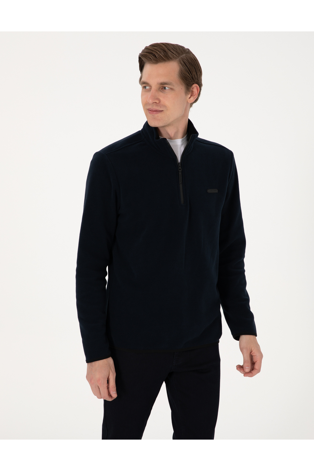 خرید اینترنتی سویشرت نیم زیپ دار پرزدار معمولی آبی سرمه ای 50314056-VR033 برند پیر کاردین Pierre Cardin اورجینال از Pierre Cardin نمایندگی ترکیه
