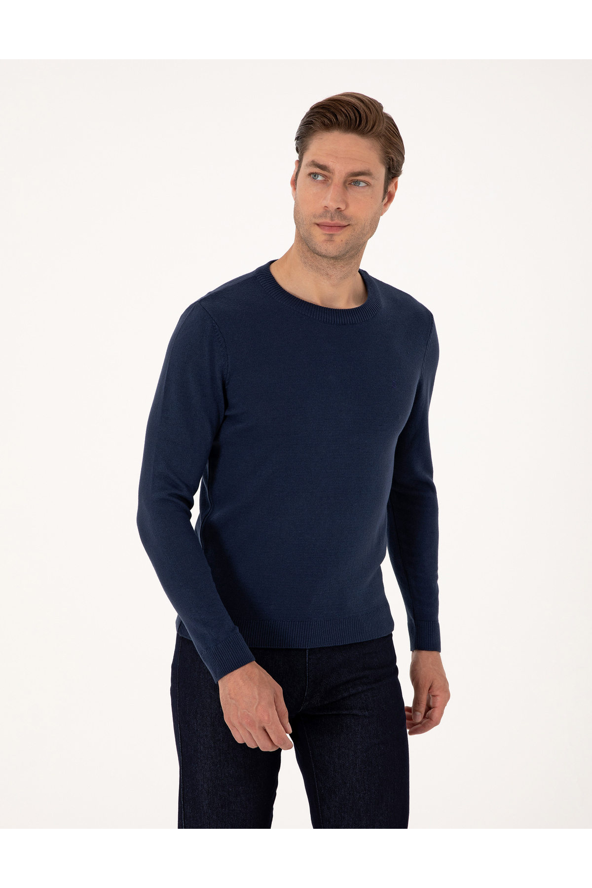 خرید اینترنتی ژاکت بافتنی پایه یقه سرمه ای روشن آبی باریک 50314192-VR059 برند پیر کاردین Pierre Cardin اورجینال از Pierre Cardin نمایندگی ترکیه