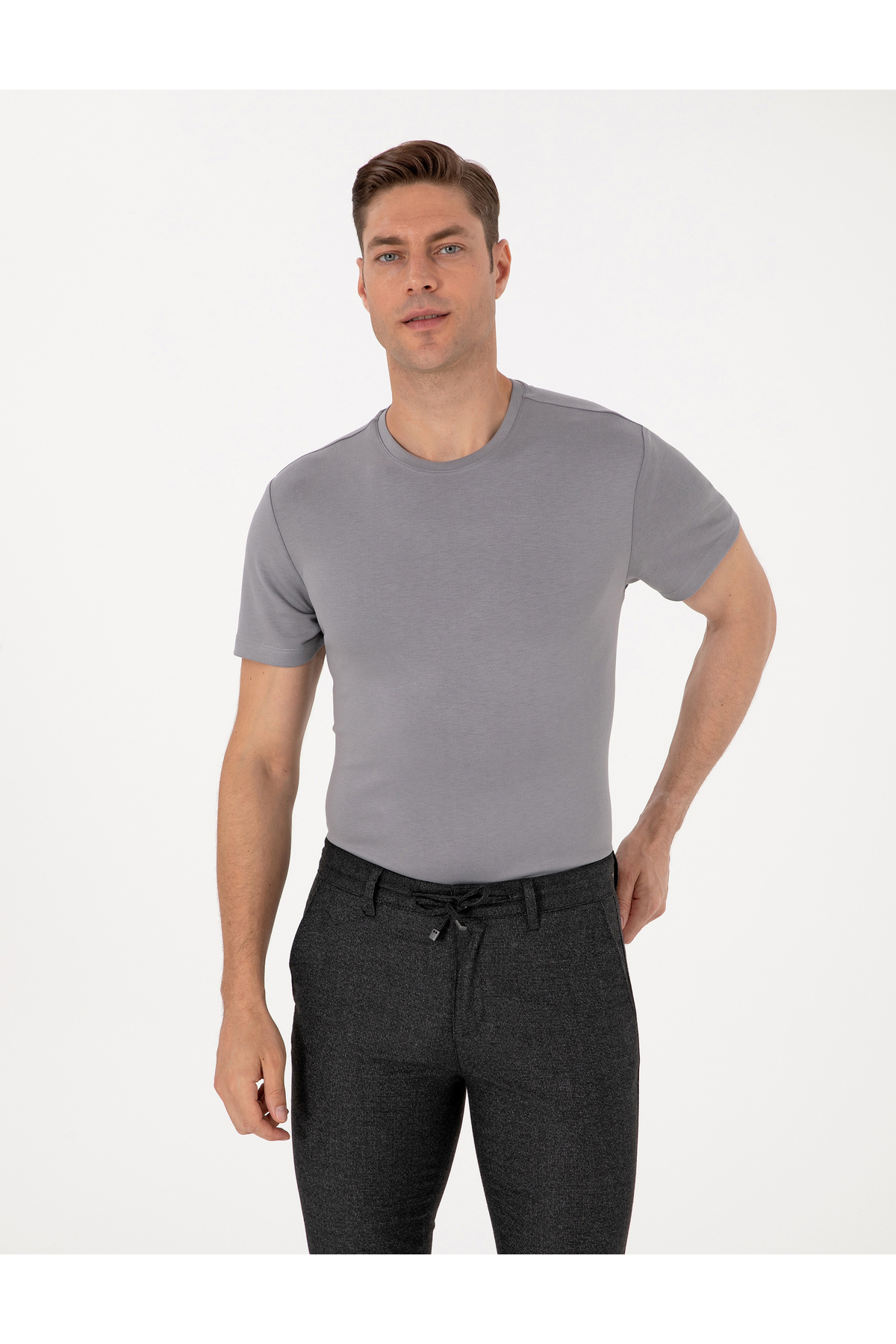 خرید اینترنتی تی شرت یقه خدمه با بافت ضخیم خاکستری 50308037-VR024 برند پیر کاردین Pierre Cardin اورجینال از Pierre Cardin نمایندگی ترکیه